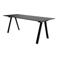 Rectangular tables in the Vu collection have a versatile trestle arrangement, which means they can also accommodate custom tops tailored to individual design requirements.