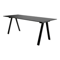 This collection of tables designed for bars and restaurants provides an extensive range of options to choose from: with a square, round or rectangular top, and legs set in a trestle arrangement at either end or radiating out from the centre.