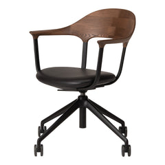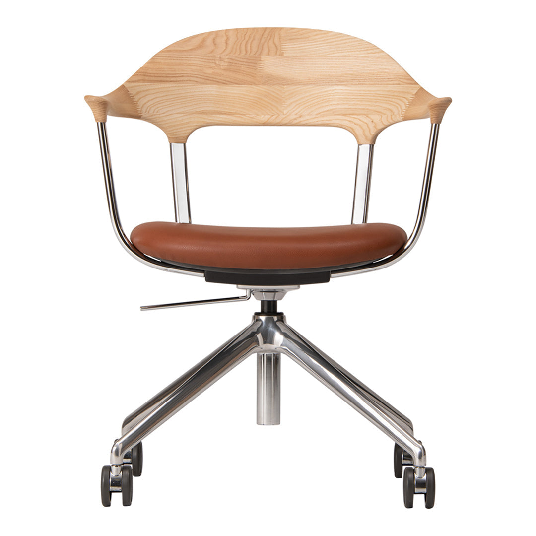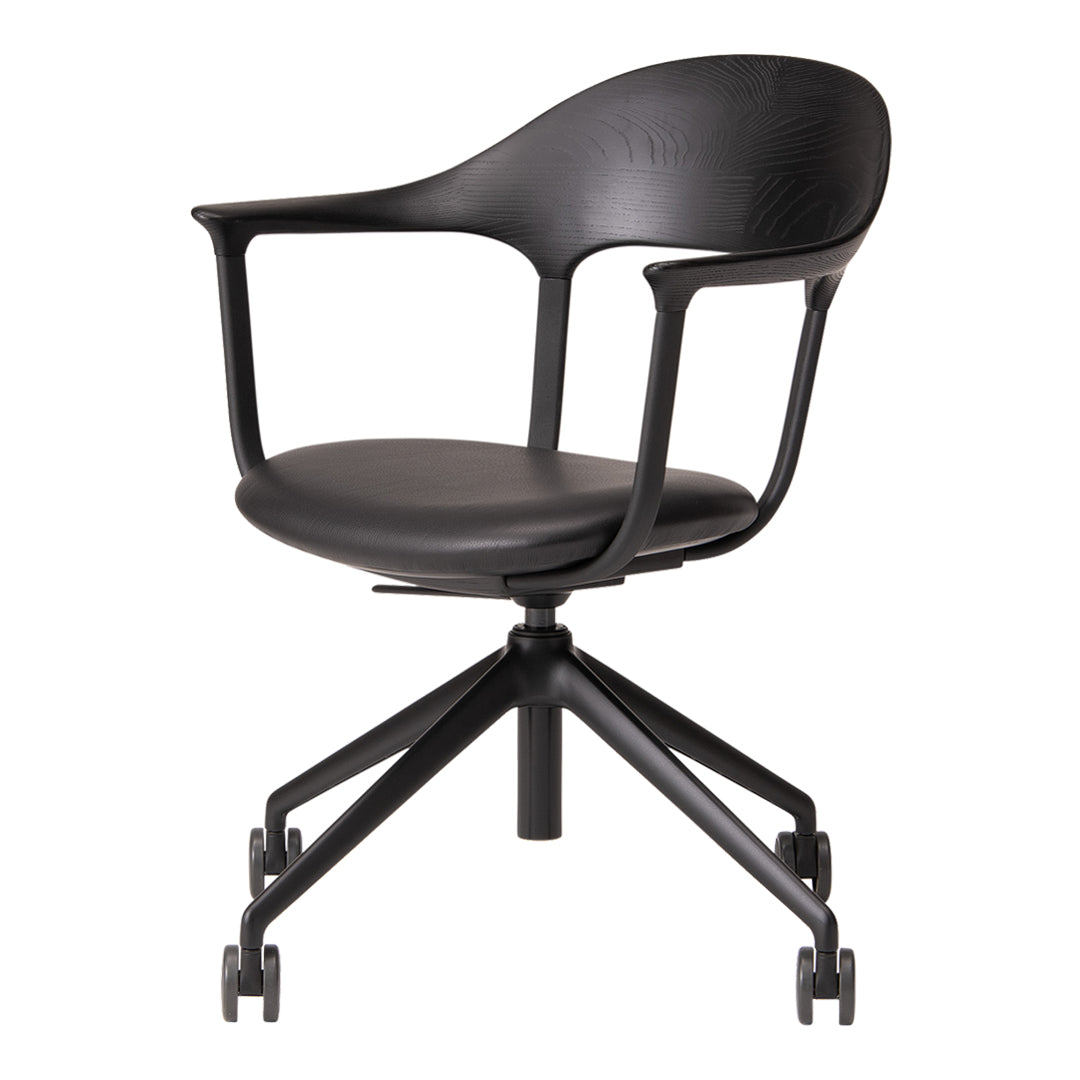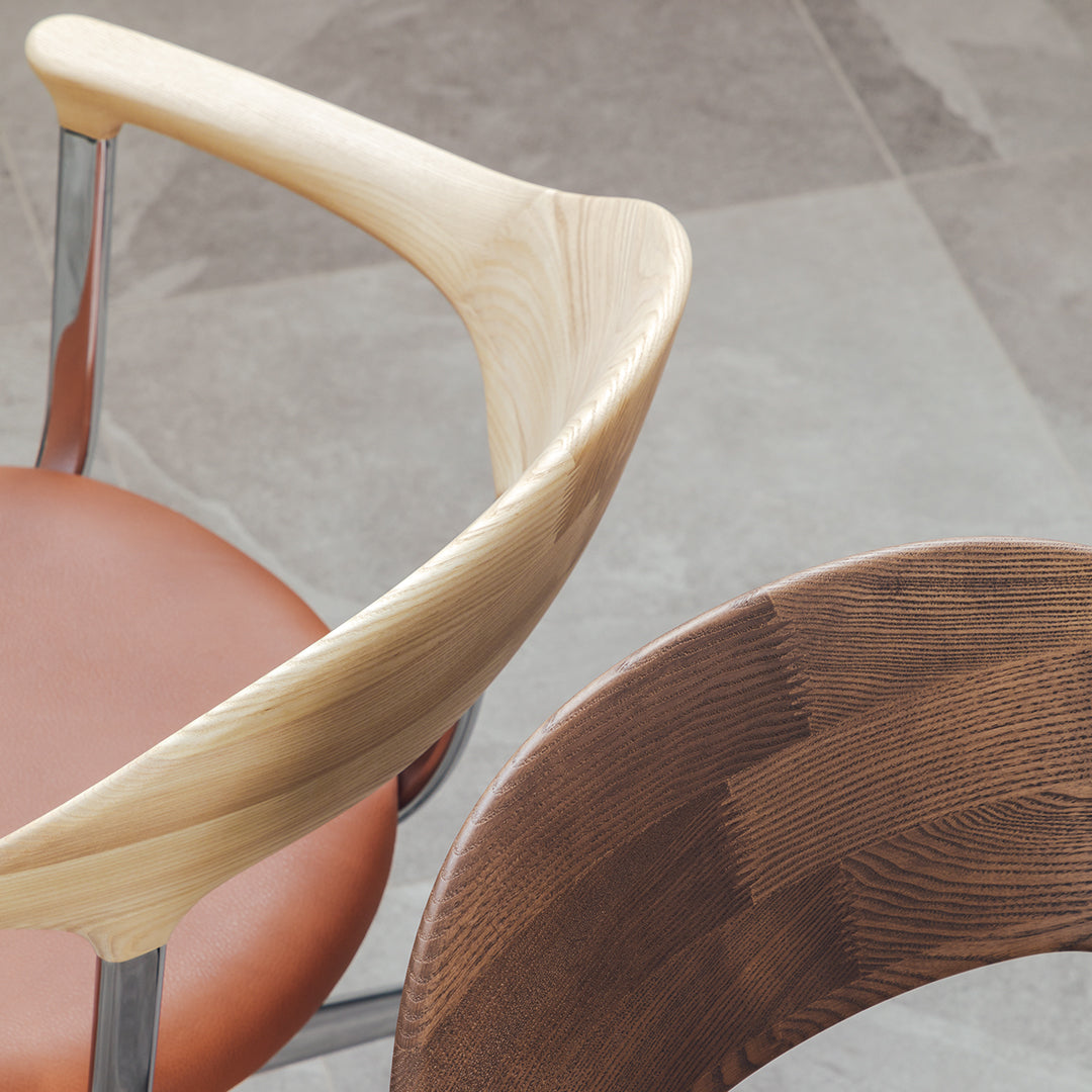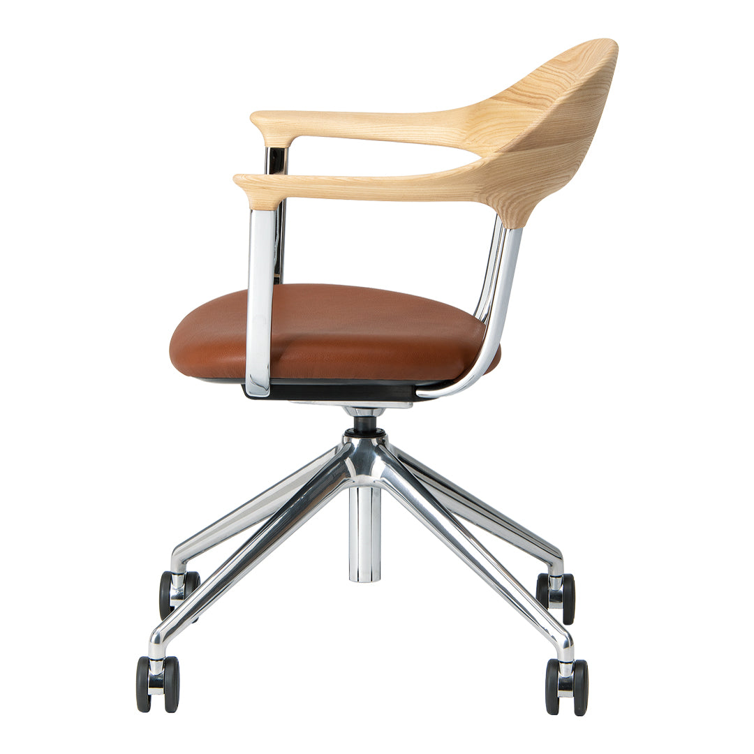 During COVID, as remote work became more common, people realized the importance of chairs for work at home. That was a momentum for the development of the FOUR chair. Indeed, a wide variety of office chairs good in design and function already existed before that, but few that fit in the atmosphere of living and dining rooms at home. The elaborate and delicate design of the chair is the result of the collaboration of the four powers: namely, Actus and CondeHouse for development and manufacturing; Jin Kuramoto for design; KOKUYO for technical supervision. Please enjoy the functional chair made of wood, aluminum, and leather that show beautiful aging.