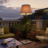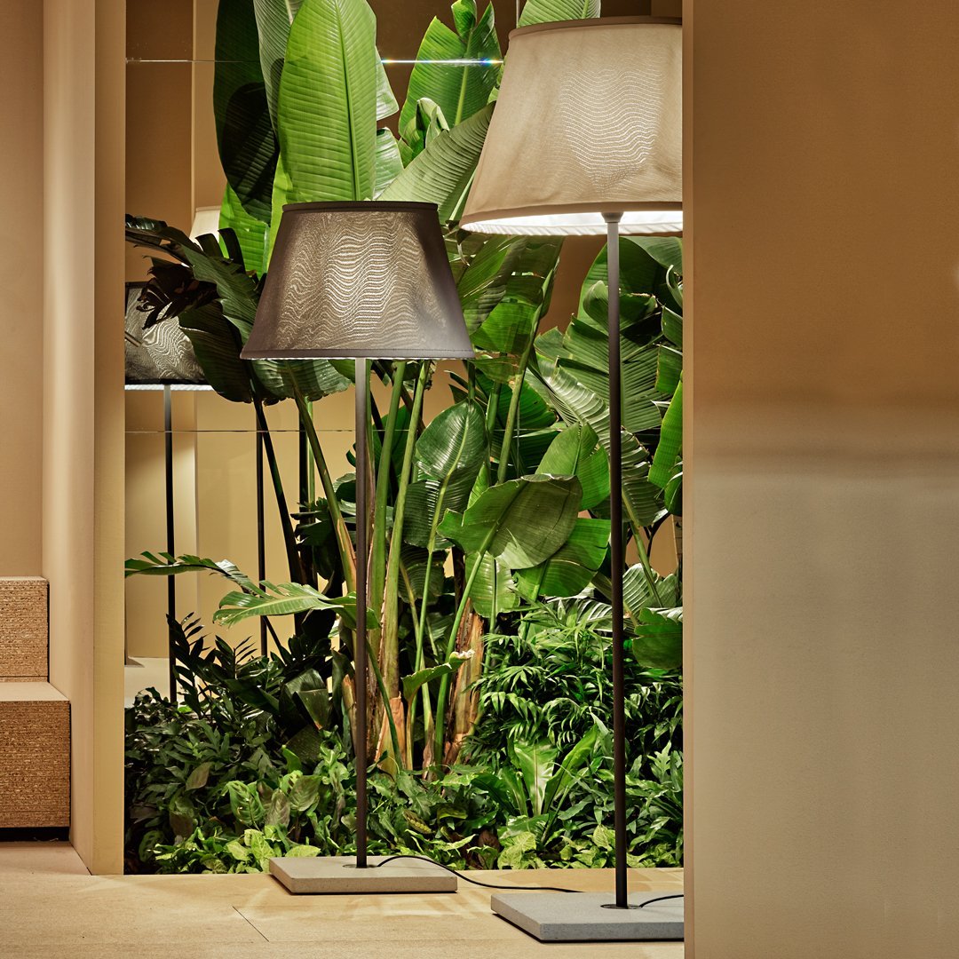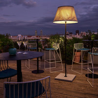 Just as materials and techniques evolve, so do lamps. The TXL managed to light up exteriors with the same warmth as interiors. But “all things must change to stay the same”, and so the lamp is updated and presented with a new fabric shade. This new material better withstands adverse weather conditions and clothes the lamp in a ductile, and yet solid and resilient look. The new TXL wants to fill the space with its own light. Its design stands out for its size, but it’s the fabric material that allows the light to pass through the shade and shimmer. Another change accorded by the designer is the base, now made of poured concrete, giving it a cleaner, one-piece look. Strong and formidable, the TXL prospers, but its essence remains unchanged and it continues to serve its purpose: to take the inviting light of a home and move it outdoors.
