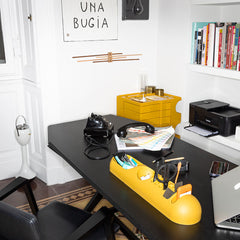 Made in polyurethane gel and retracing an original design by Joe Colombo, Bob is an object holder with a strong materic impact that embodies the pop art of the ‘60s. Ironic and informal, it finds its ideal setting on a variety of shelves in view of its practical single-pen holes, but it is equally functional in all corners of the house thanks to its multiple compartments that neatly accommodate implements and objects used daily. The flexible material accentuates its organic value and sinuous shapes, turning it into an authentic mix-and-match design complement that can be freely positioned.