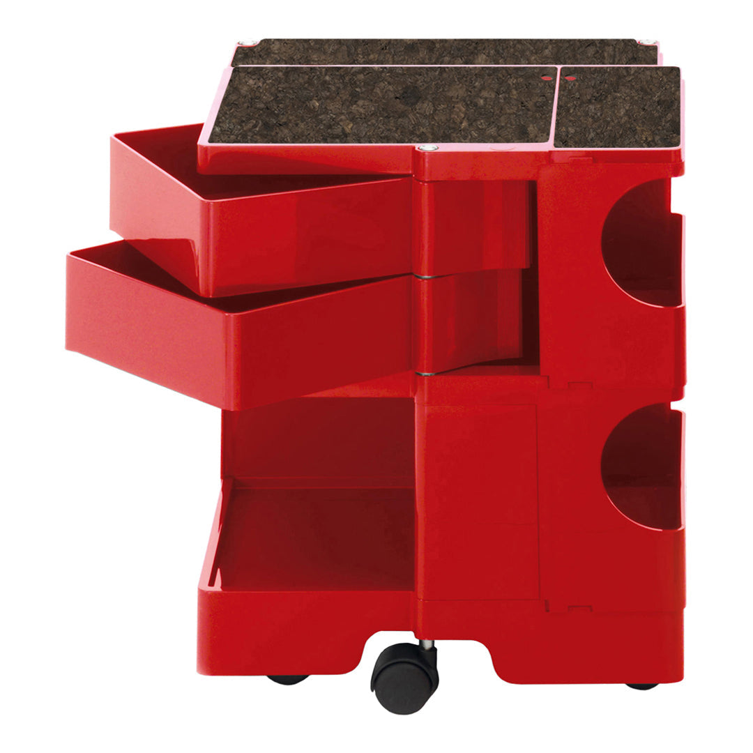 The trolley's thoughtful engineering extends beyond aesthetics—smooth-rolling polypropylene casters provide effortless mobility between workspaces, while the optional natural oak or cork top introduces organic material contrast to the piece's modernist plastic construction. The medium Boby's precise dimensions (16.54"W x 16.93"D x 20.7"H) create a perfectly proportioned footprint for contemporary interiors where both functional storage and design heritage are valued equally.