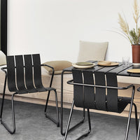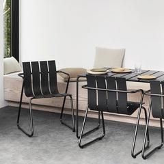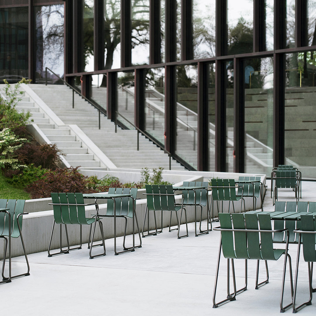 The Ocean Collection is a reimagined table-and-chair collection (originally designed in 1955) in ocean waste plastic, combining innovative solutions to prevent pollution of the world’s oceans - with one of the 20th century’s most renowned designers, Nanna Ditzel. The series is characterized by its light structure with repeated slats and metal frames, made and tested for outdoor use.
