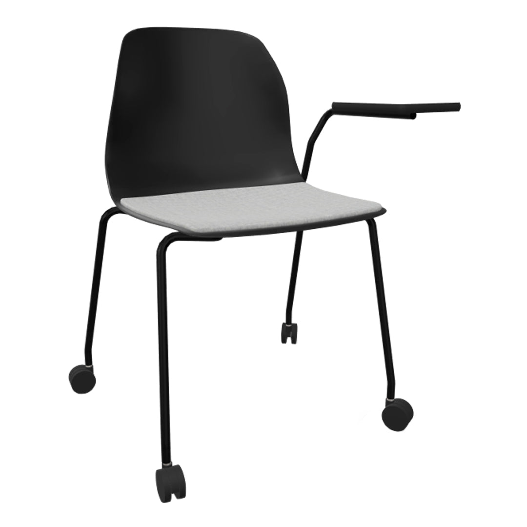 Questions about the Pelican 08 Chair - Left Fixed Tablet - 4 Leg, Black Lacquered Metal w/ Casters - Seat Upholstered?
