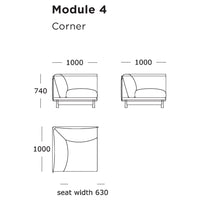 Module 4 (Corner): 39.4" W x 39.4" D x 29.1" H | 17.3" SH