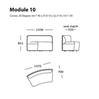 Module 10 (Corner, 30 Degree): 54.1" W x 27.6" D x 32.3" H | 19.1" SH
