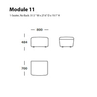Module 11 (1-Seater, No Back): 31.5 " W x 27.6" D x 19.1" H