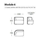 Module 6 (1.5-Seater, Left Arm): 40.9" W x 27.6" D x 32.3" H | 19.1" SH