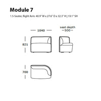 Module 7 (1.5-Seater, Right Arm): 40.9" W x 27.6" D x 32.3" H | 19.1" SH