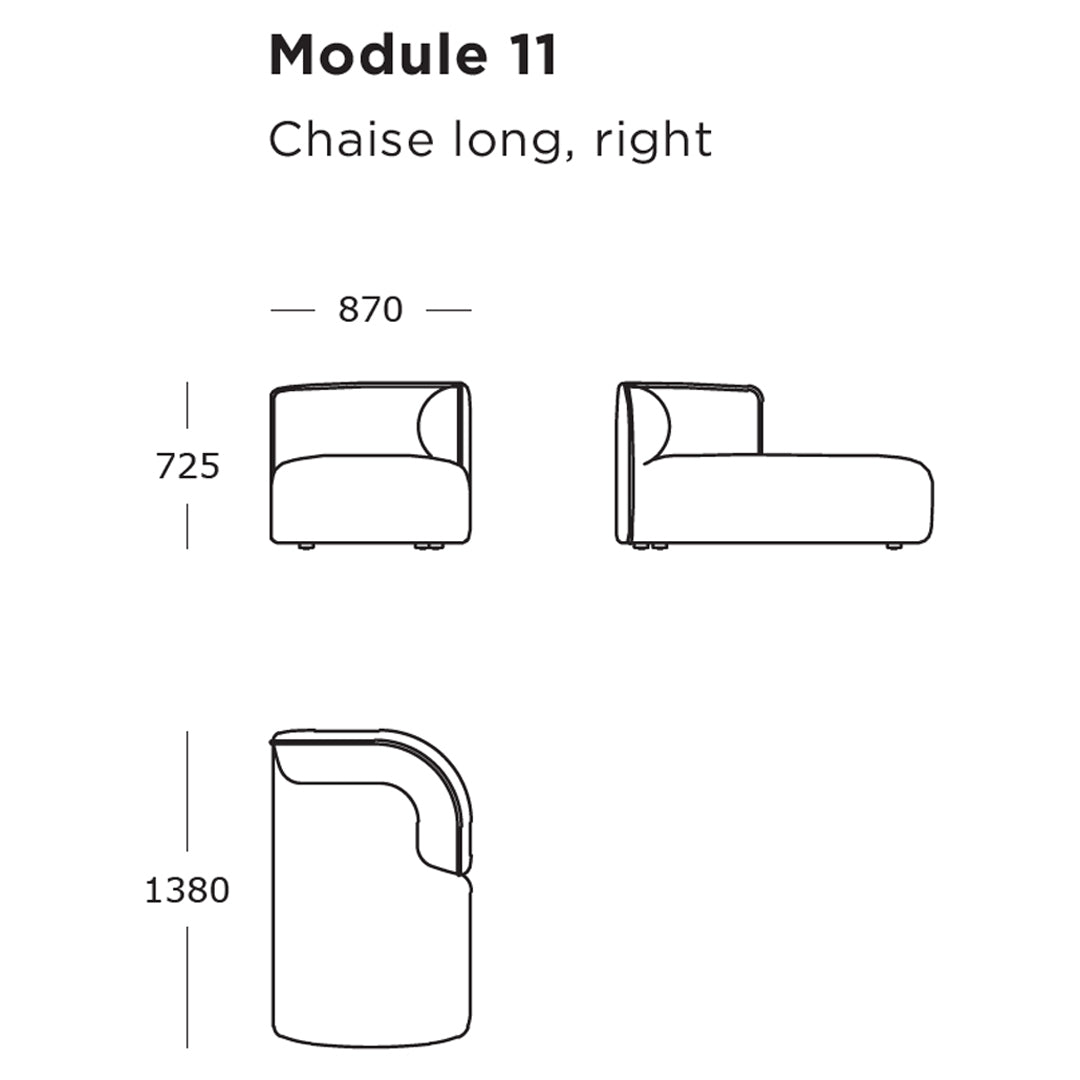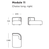 Module 11 (Chaise Long, Right): 34.25" W x 54.3" D x 28.5" H | 16.1" SH