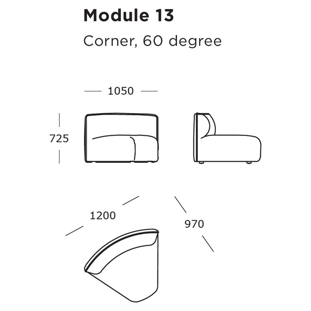 Module 13 (Corner, 60 Degree): 41.3" W x 47.2" D x 28.5" H | 16.1" SH