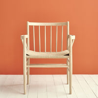 This wicker series by the renowned FDB designer Jorgen Baekmark (b. 1919) comprises several pieces of furniture, including the classic and iconic J80 dining chair. The chair harks back to the golden age of FDB Mobler in the 1950s, but has survived to this day on account of its elegant and timeless look. The J80 is also available as a free-standing chair with armrests is very comfortable to sit in for long periods of time, because it is made entirely of high-quality materials, from the wickerwork to the solid wood. The chair matches the C28 dining table and the J83B bench, which also has a wicker seat. Cushions can be purchased separately.