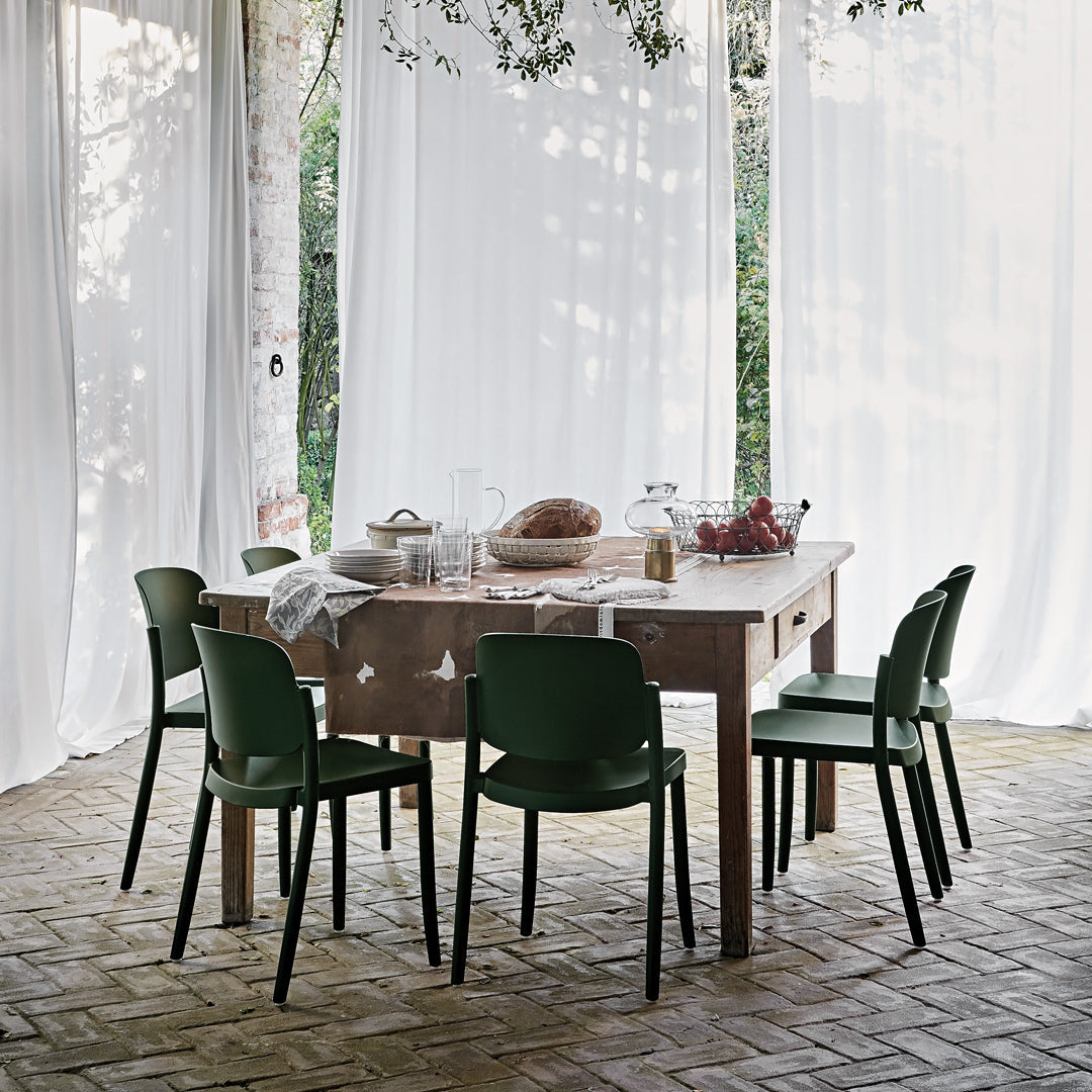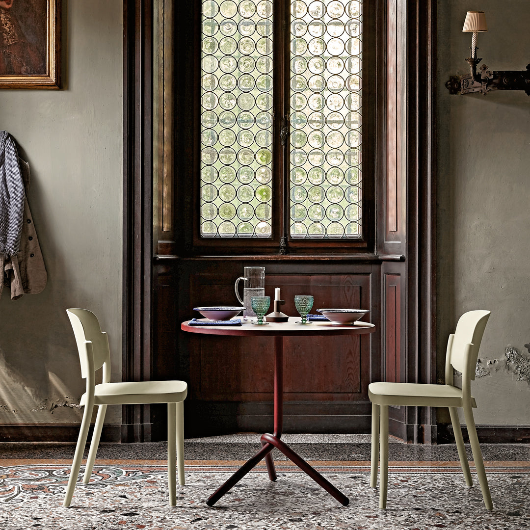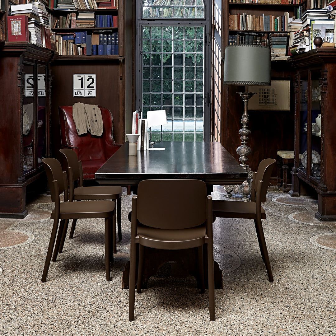 PIAZZA 1 gently combines traditional shapes with contemporary materials. The subtle interpretation of classic traces which identifies it, together with its comfort, allows us to perceive it as suitable in an almost unlimited range of destinations: home and canteen, cafe and restaurant, library and meeting room, there is no preclusion to the use of this chair.