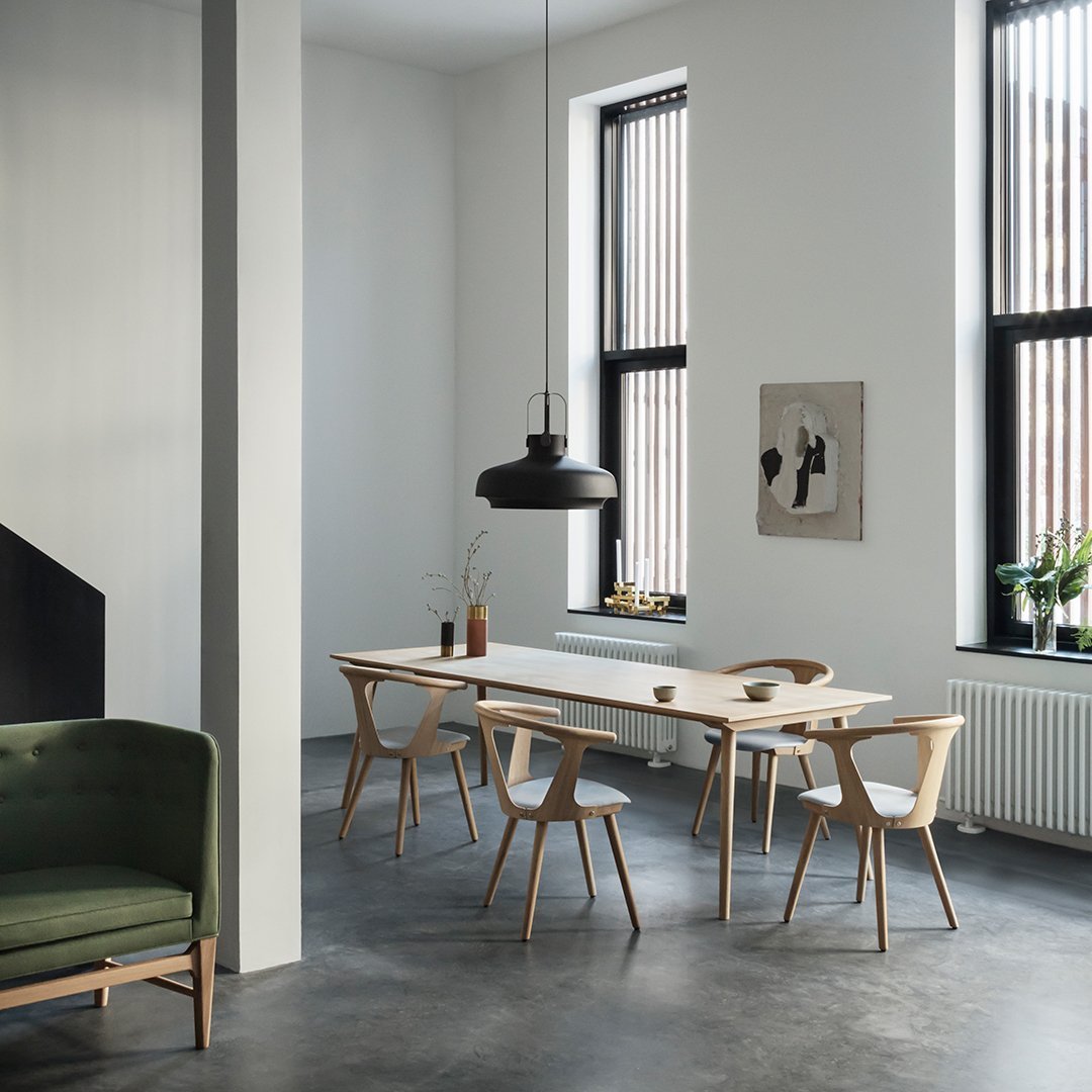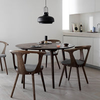 The interplay between positive and negative space is central to in Between, Sami Kallio's chair design for &Tradition. Its back and side panels provide a concrete shape and support, but forms are created equally by the gaps in between them. Kallios expertise in traditional woodworking craftsmanship is evident in the chair. in Between is produced using two classical techniques; compression molding (making it light and thin, yet strong) and woodturning (a technique that uses a lathe to achieve greater detail). Sami Kallio, with his solid grounding in the traditional woodworking techniques of Scandinavia and his eye for ingenious detail, has proven to be the ideal candidate to design the first wooden chair in &Traditions stable. The upholstered seat is the perfect addition to the wooden chair: it embraces modern lifestyles and long, cozy dinners around the dining table, without compromising the chairs light and elegant expression.