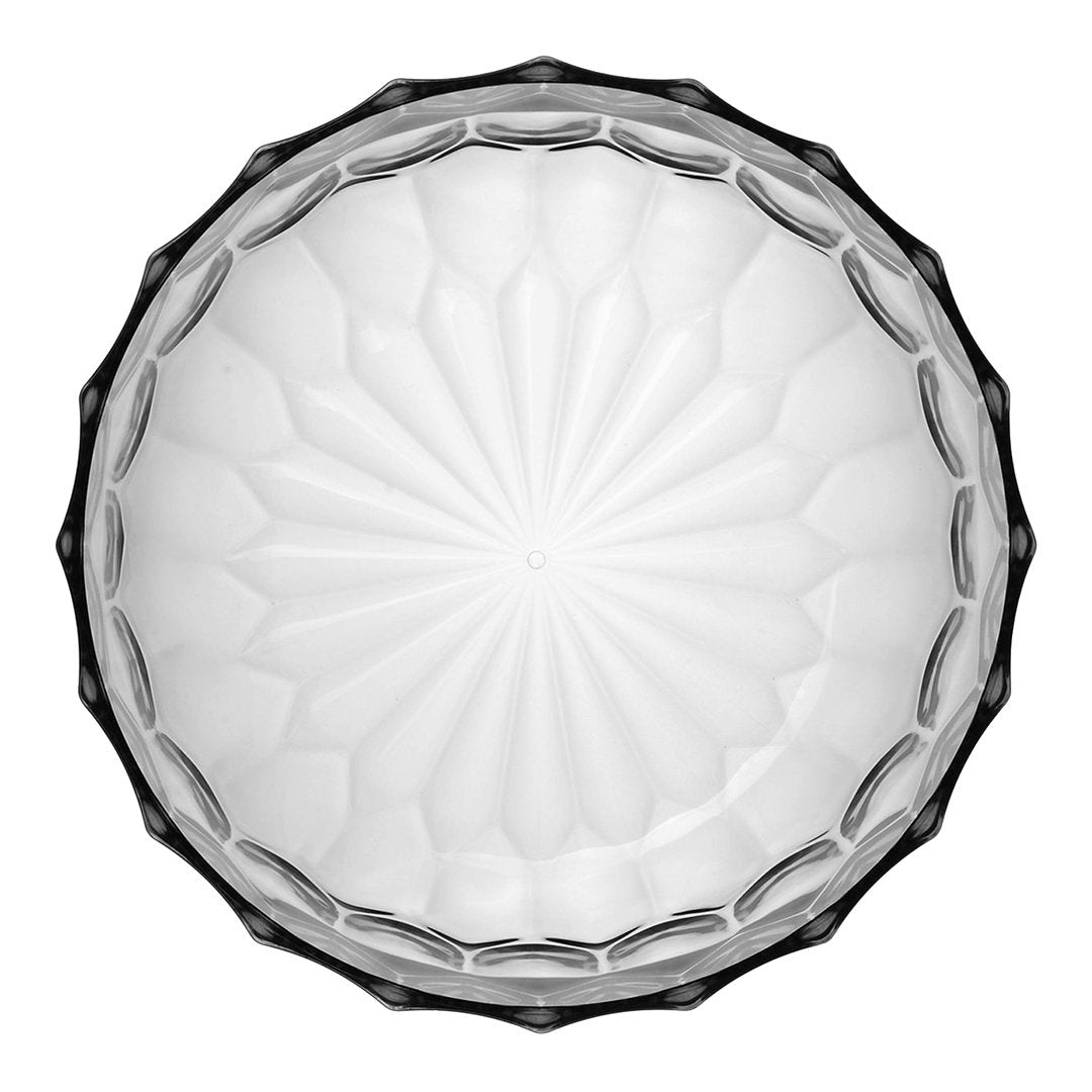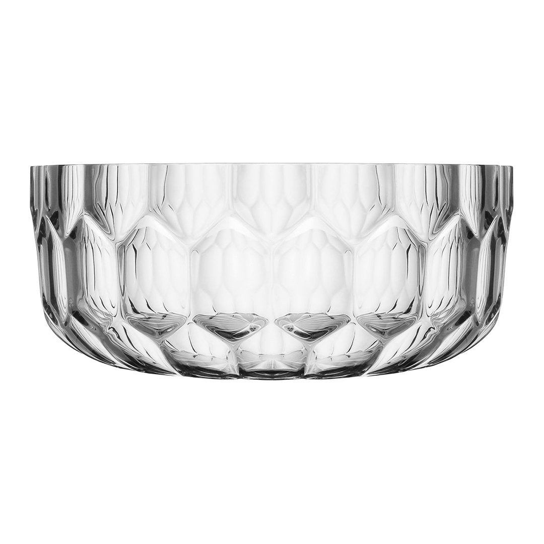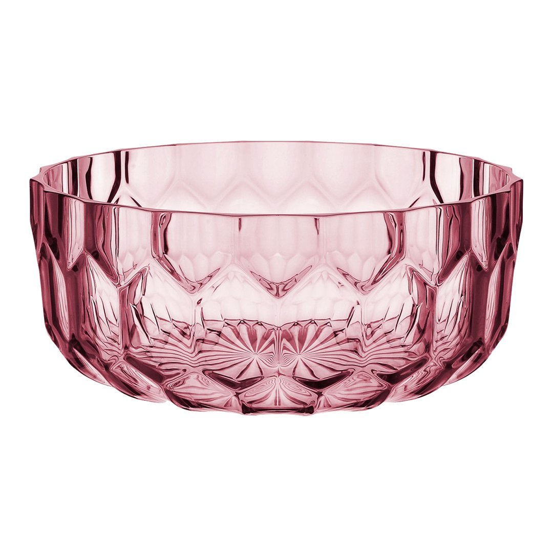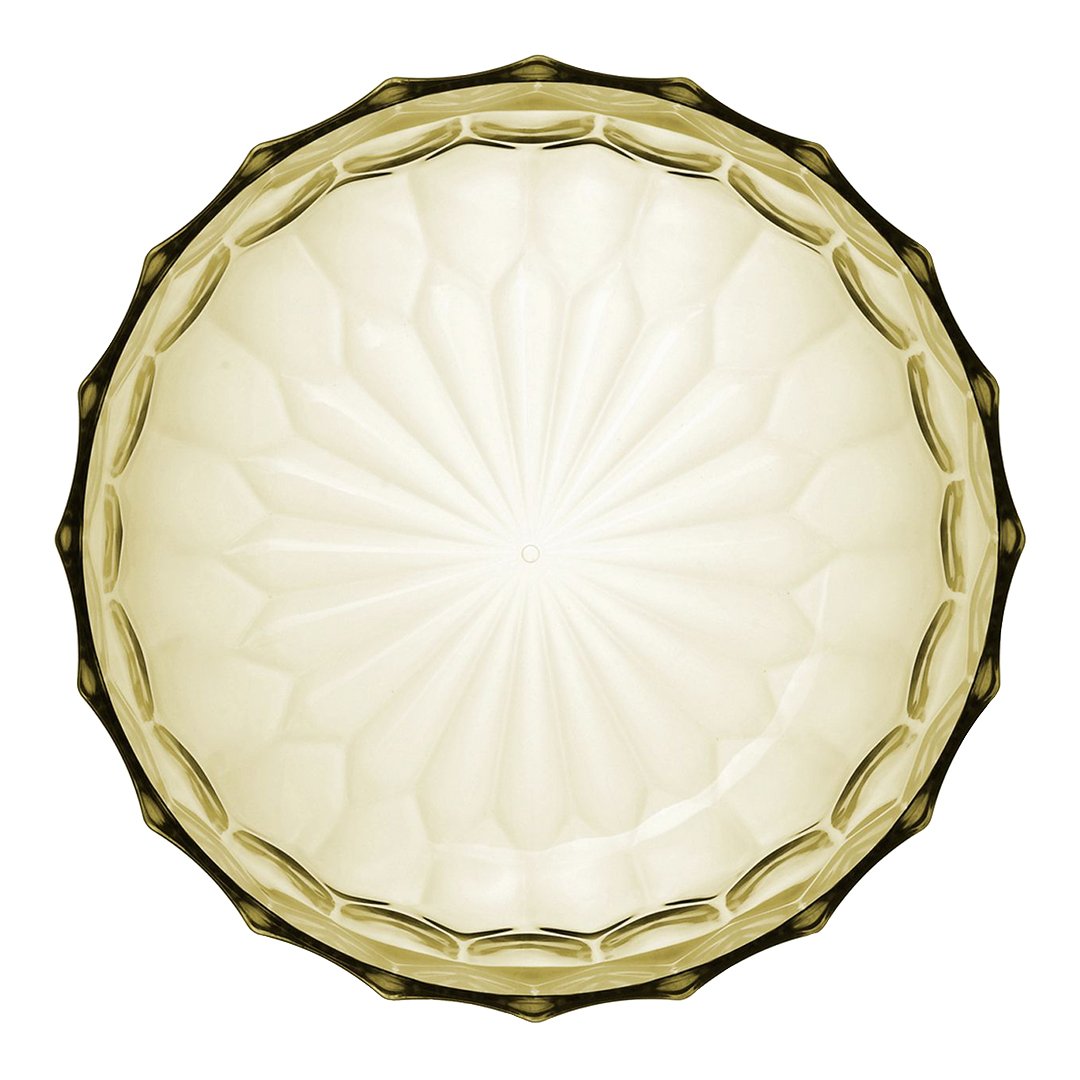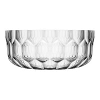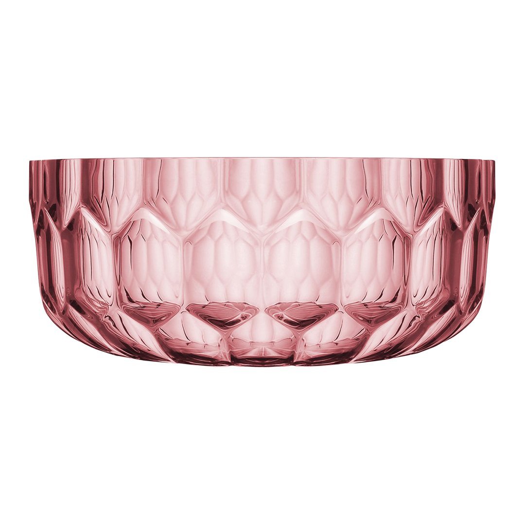 A comprehensive line of plates, trays, glasses, bowls and carafes made from colourful and transparent PMMA plastic. The line's individuality is down to the fact that each model presents a different organic pattern that has clearly been inspired by nature, harking back to the moulds that were once used for making jellies. This design highlights temporality, and therefore also variety, from smallest to largest. The faint, delicate and accessible transparent colours are suitable for furnishing any kind of table: creative and original, or more classic and monochrome.