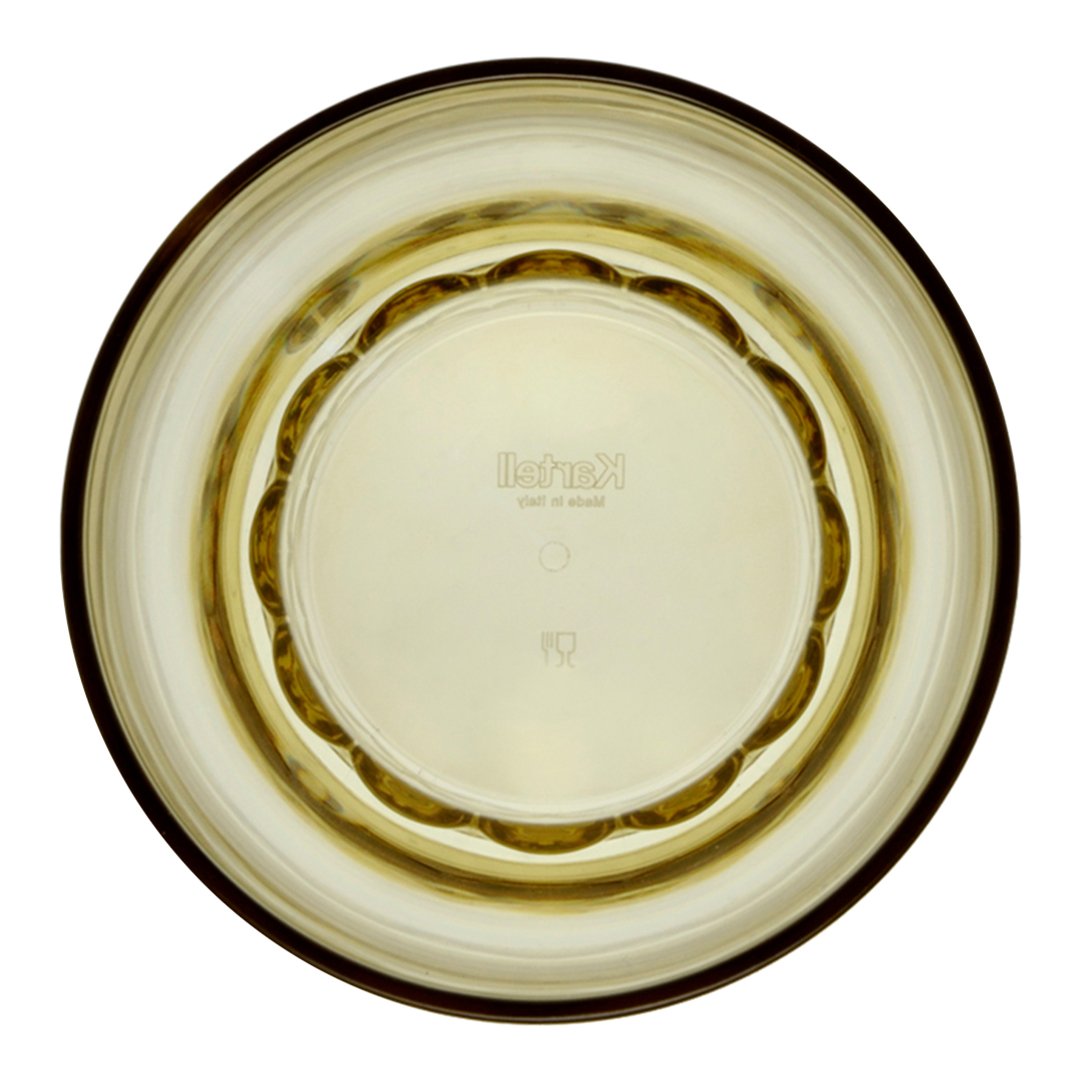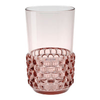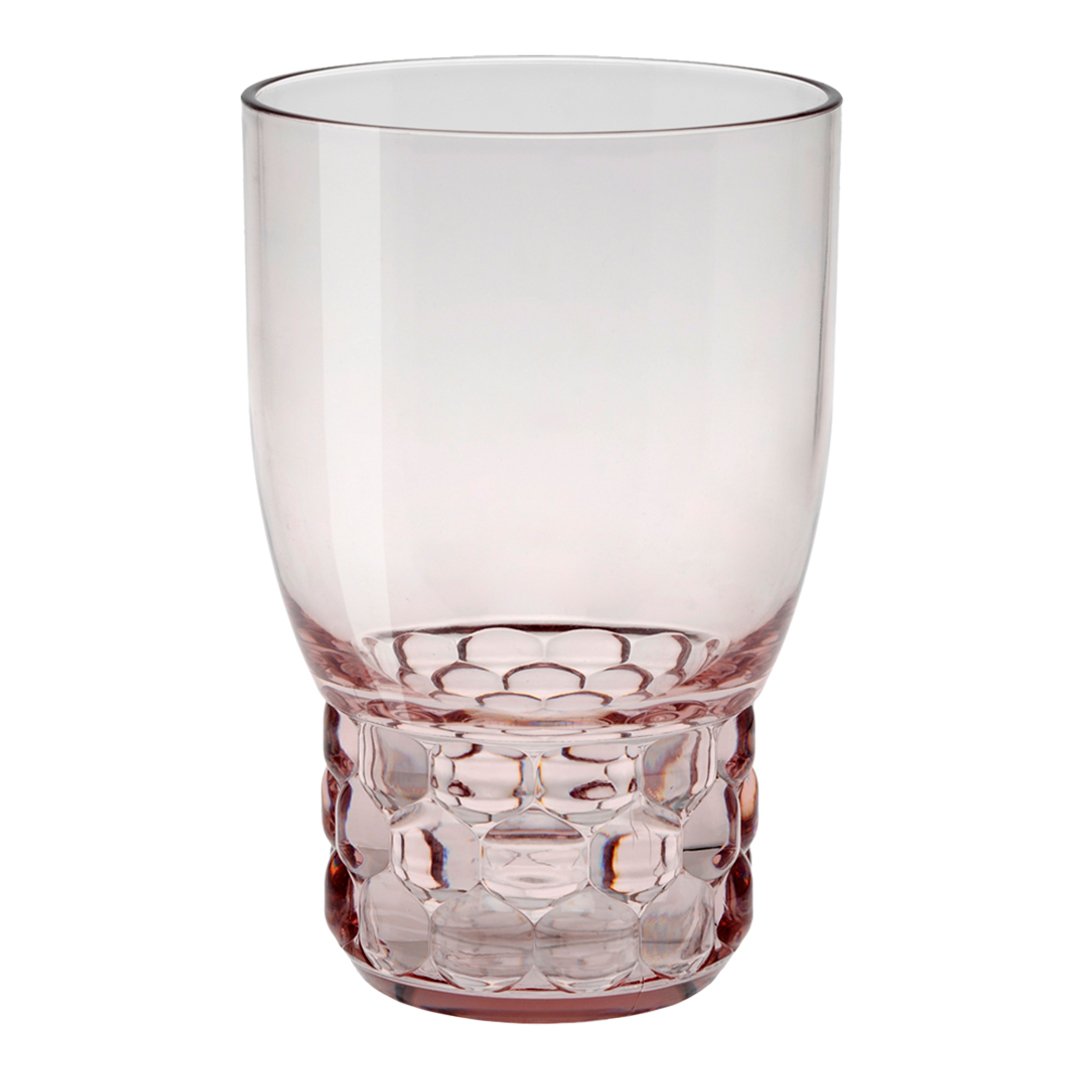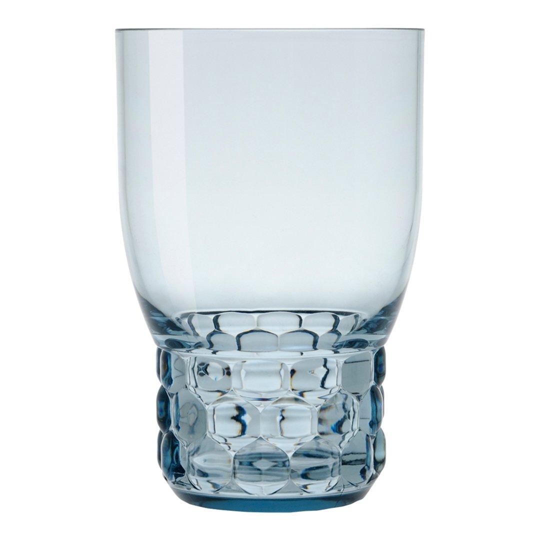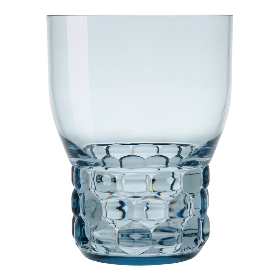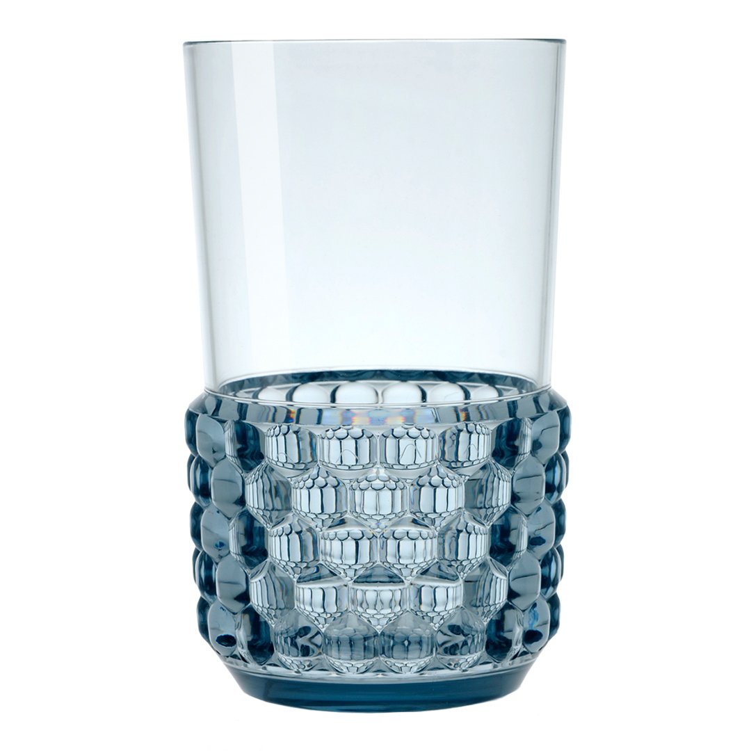 A comprehensive line of plates, trays, glasses, bowls and carafes made from colourful and transparent PMMA plastic. The line's individuality is down to the fact that each model presents a different organic pattern that has clearly been inspired by nature, harking back to the moulds that were once used for making jellies. This design highlights temporality, and therefore also variety, from smallest to largest. The faint, delicate and accessible transparent colours are suitable for furnishing any kind of table: creative and original, or more classic and monochrome.