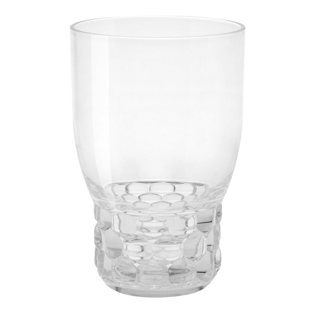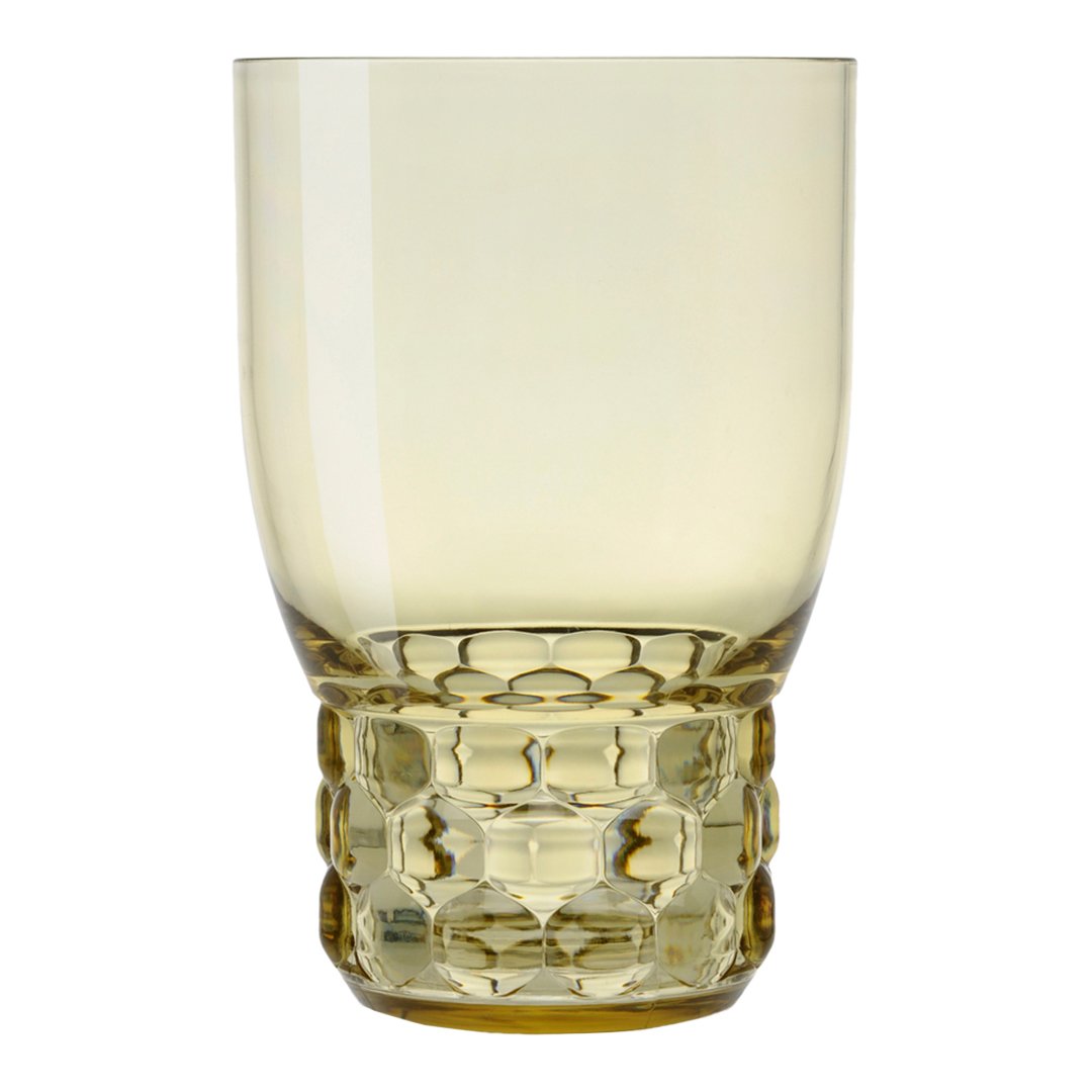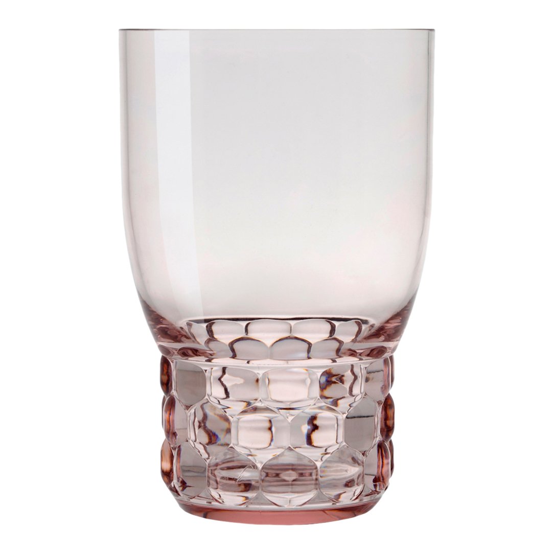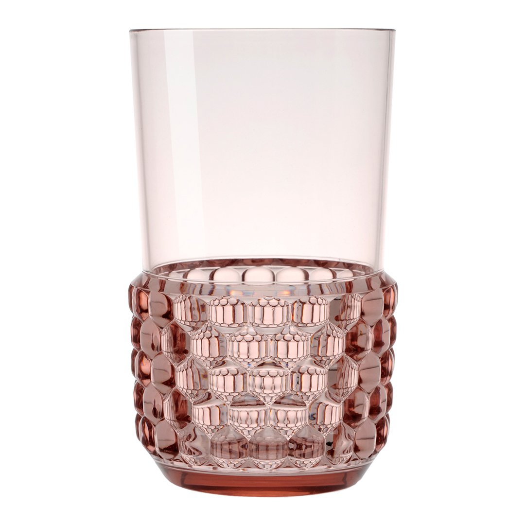 A comprehensive line of plates, trays, glasses, bowls and carafes made from colourful and transparent PMMA plastic. The line's individuality is down to the fact that each model presents a different organic pattern that has clearly been inspired by nature, harking back to the moulds that were once used for making jellies. This design highlights temporality, and therefore also variety, from smallest to largest. The faint, delicate and accessible transparent colours are suitable for furnishing any kind of table: creative and original, or more classic and monochrome.
