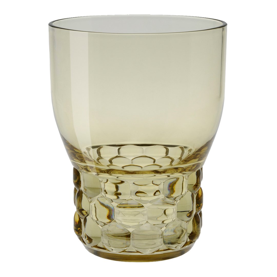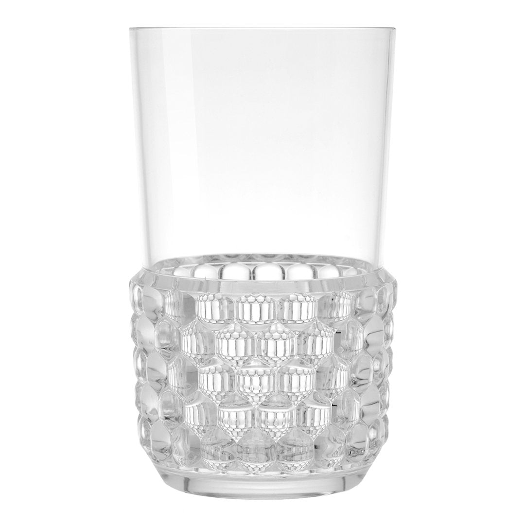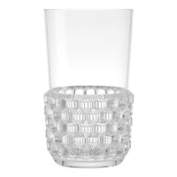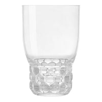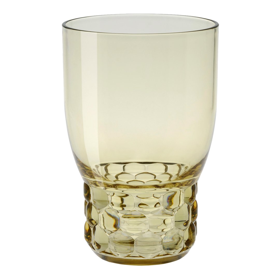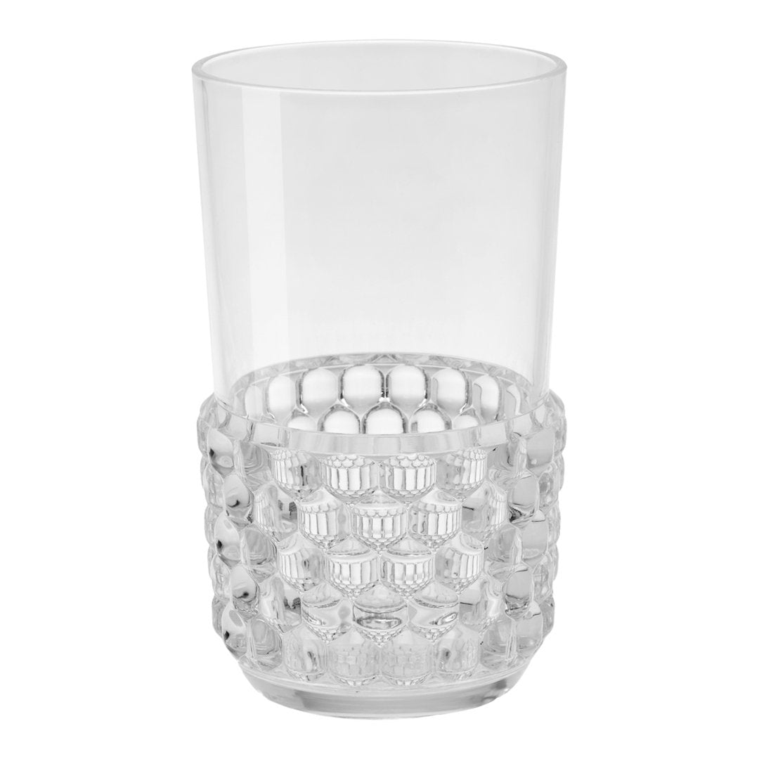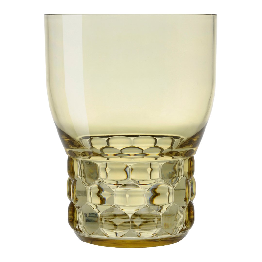 A comprehensive line of plates, trays, glasses, bowls and carafes made from colourful and transparent PMMA plastic. The line's individuality is down to the fact that each model presents a different organic pattern that has clearly been inspired by nature, harking back to the moulds that were once used for making jellies. This design highlights temporality, and therefore also variety, from smallest to largest. The faint, delicate and accessible transparent colours are suitable for furnishing any kind of table: creative and original, or more classic and monochrome.