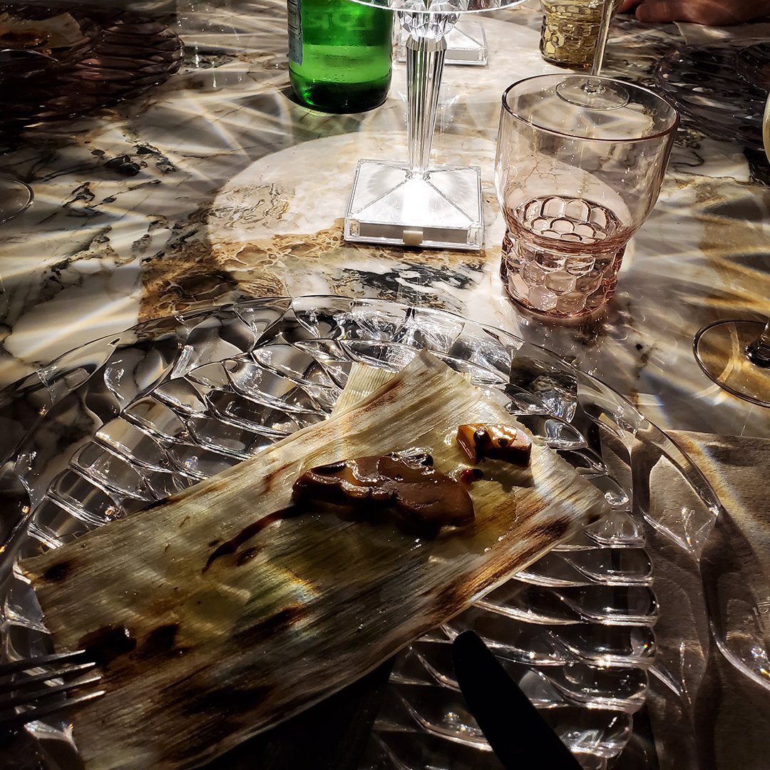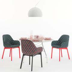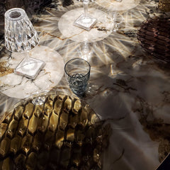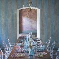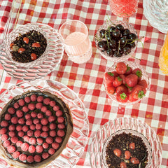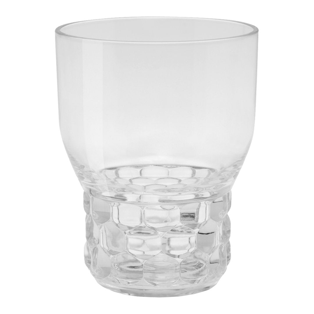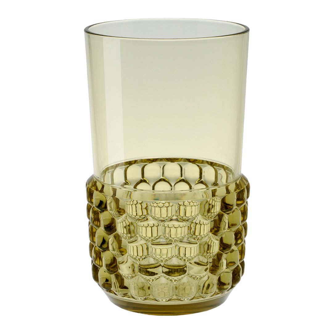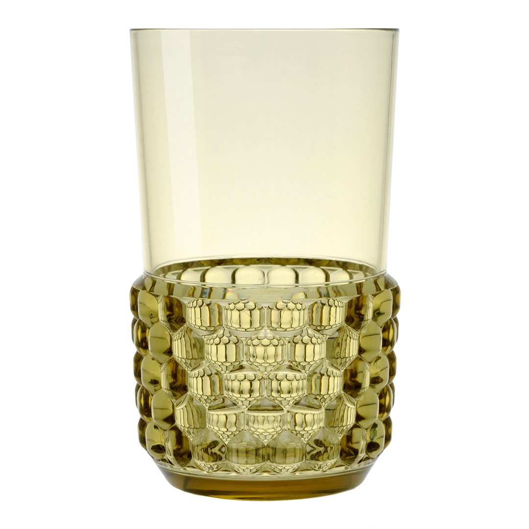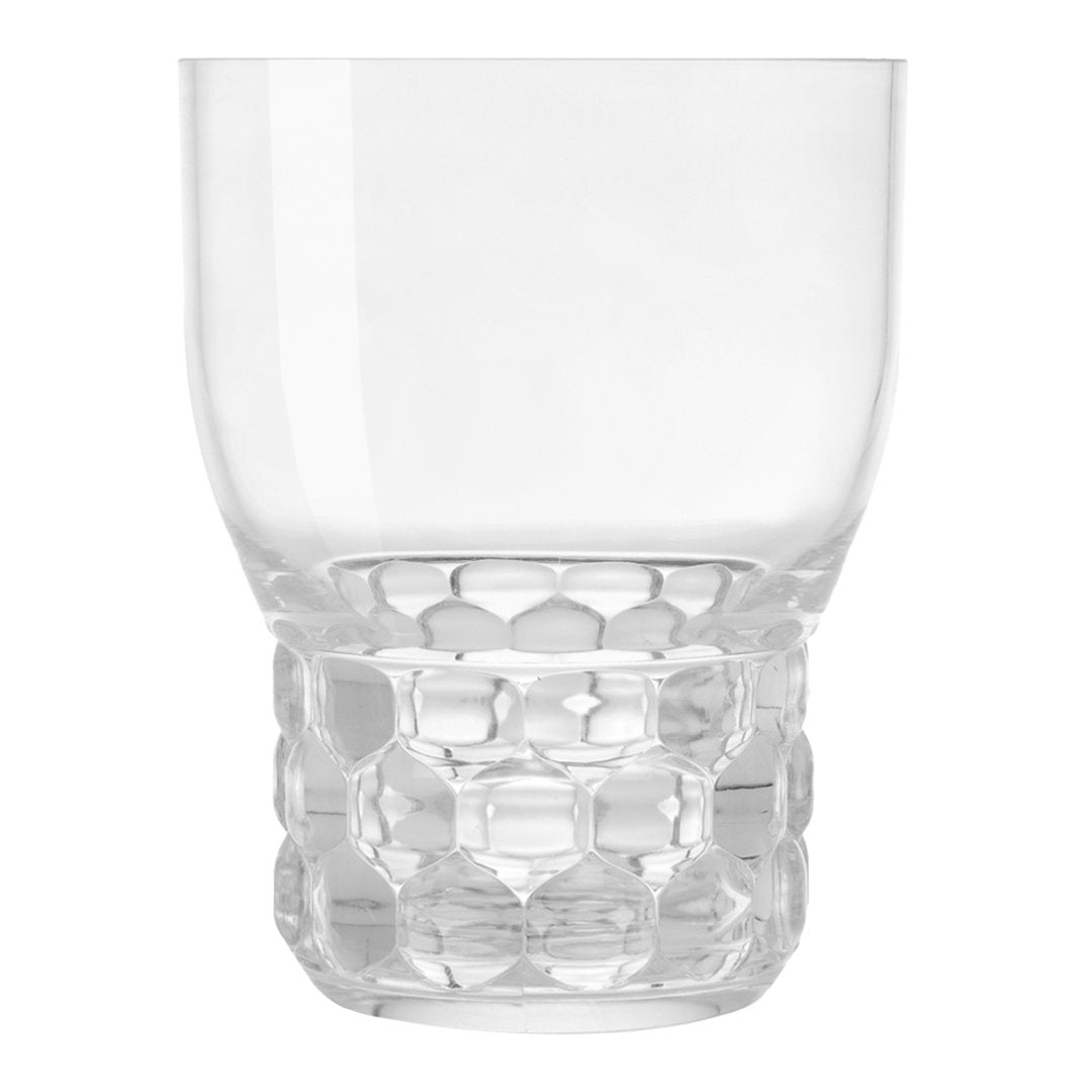 A comprehensive line of plates, trays, glasses, bowls and carafes made from colourful and transparent PMMA plastic. The line's individuality is down to the fact that each model presents a different organic pattern that has clearly been inspired by nature, harking back to the moulds that were once used for making jellies. This design highlights temporality, and therefore also variety, from smallest to largest. The faint, delicate and accessible transparent colours are suitable for furnishing any kind of table: creative and original, or more classic and monochrome.