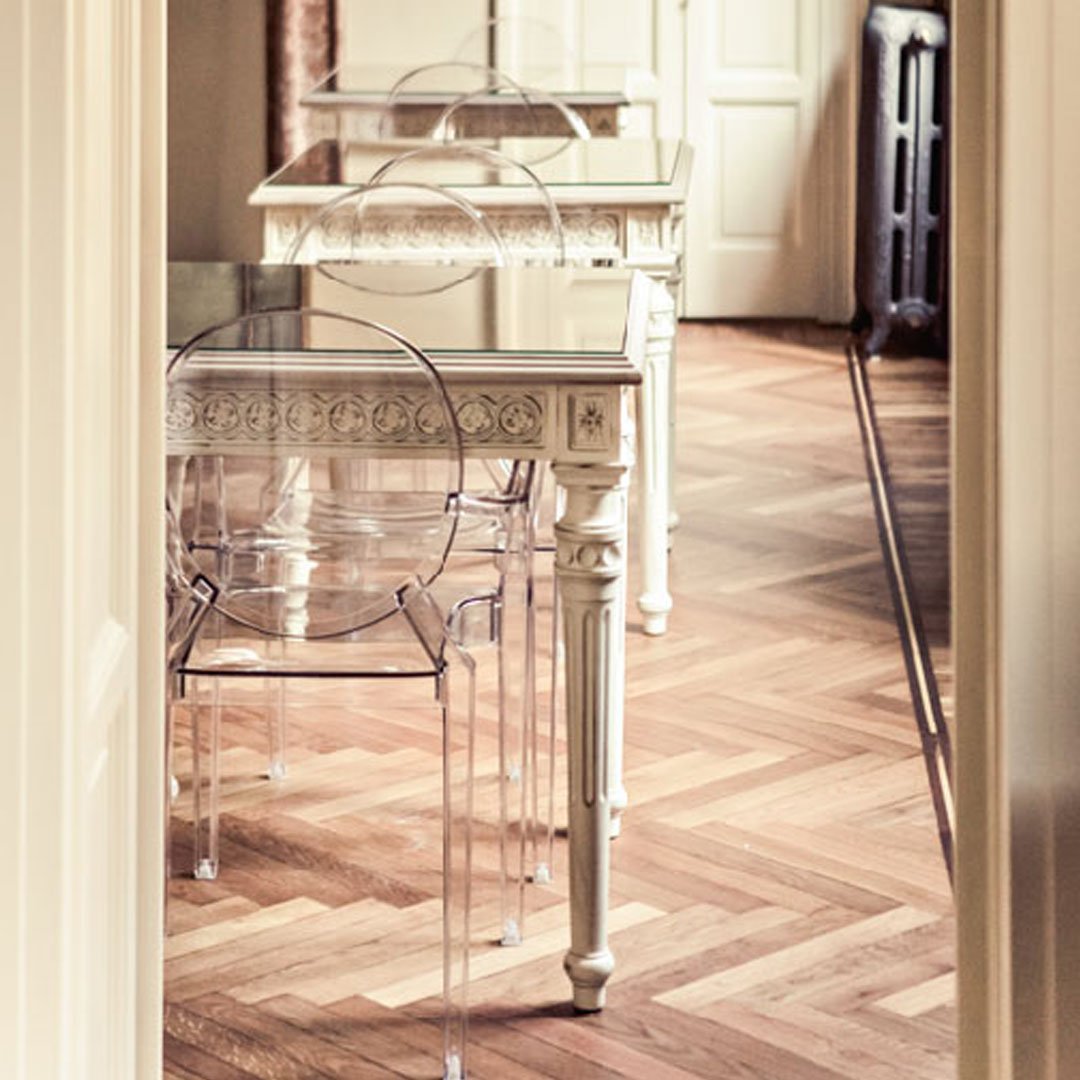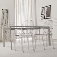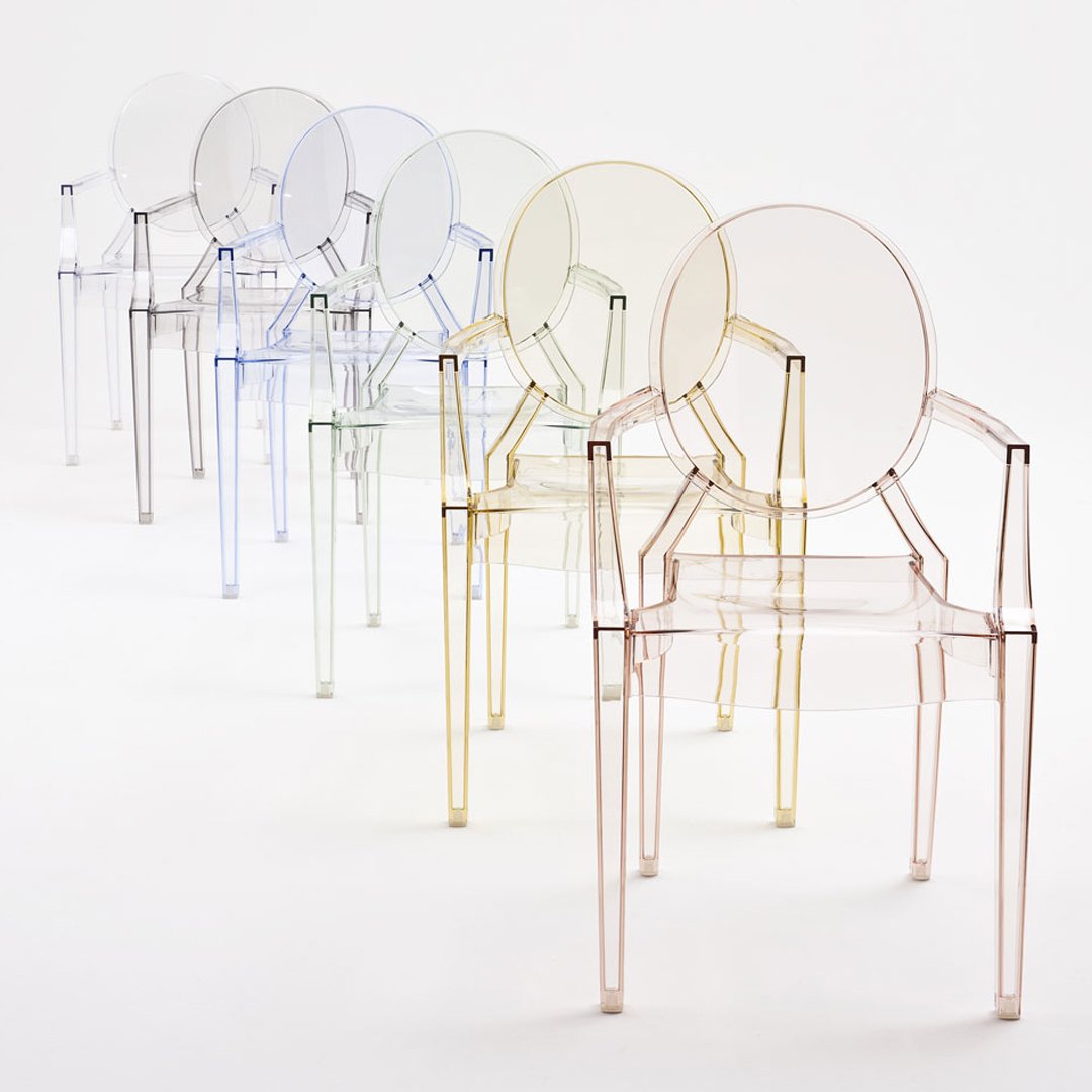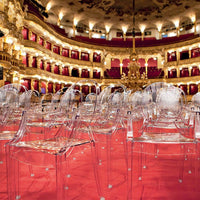 We like a touch of elegance. We like a touch of irony. The Kartell Louis Ghost chair is the most daring example of baroque made to excite, dazzle and captivate...all out of a single mold. Yes, the Louis Ghost chair looks like it is made of crystal but in actuality it is durable, scratch and weather resistant. It is ok if you want to live like Louis XV, we think of you as king anyway.