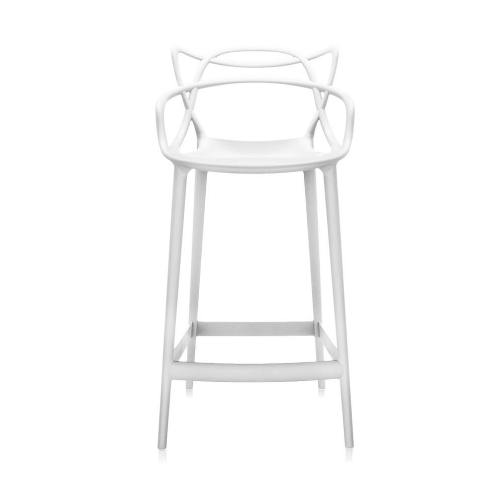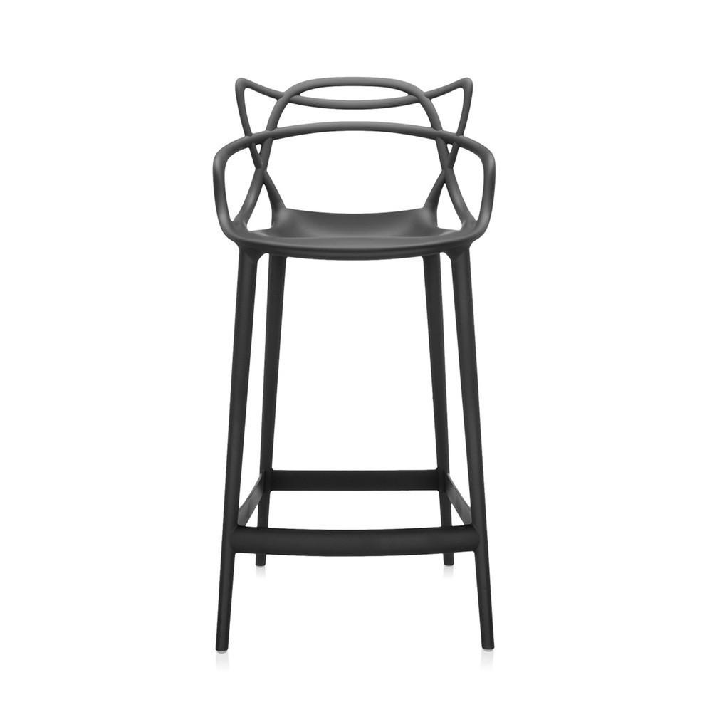 Kartell also offers a stool version of the Masters chair, winner of the Good Design Award 2010 and the Red Dot Award 2013, and a worldwide best seller. The legs are lengthened and the seat shrunk, but the frame's unmistakable graphic look, created by the weave of the silhouettes of three iconic chairs, remains the same. Ideal for both the home and contract sectors, Masters Stool is equally at ease indoors and out.