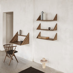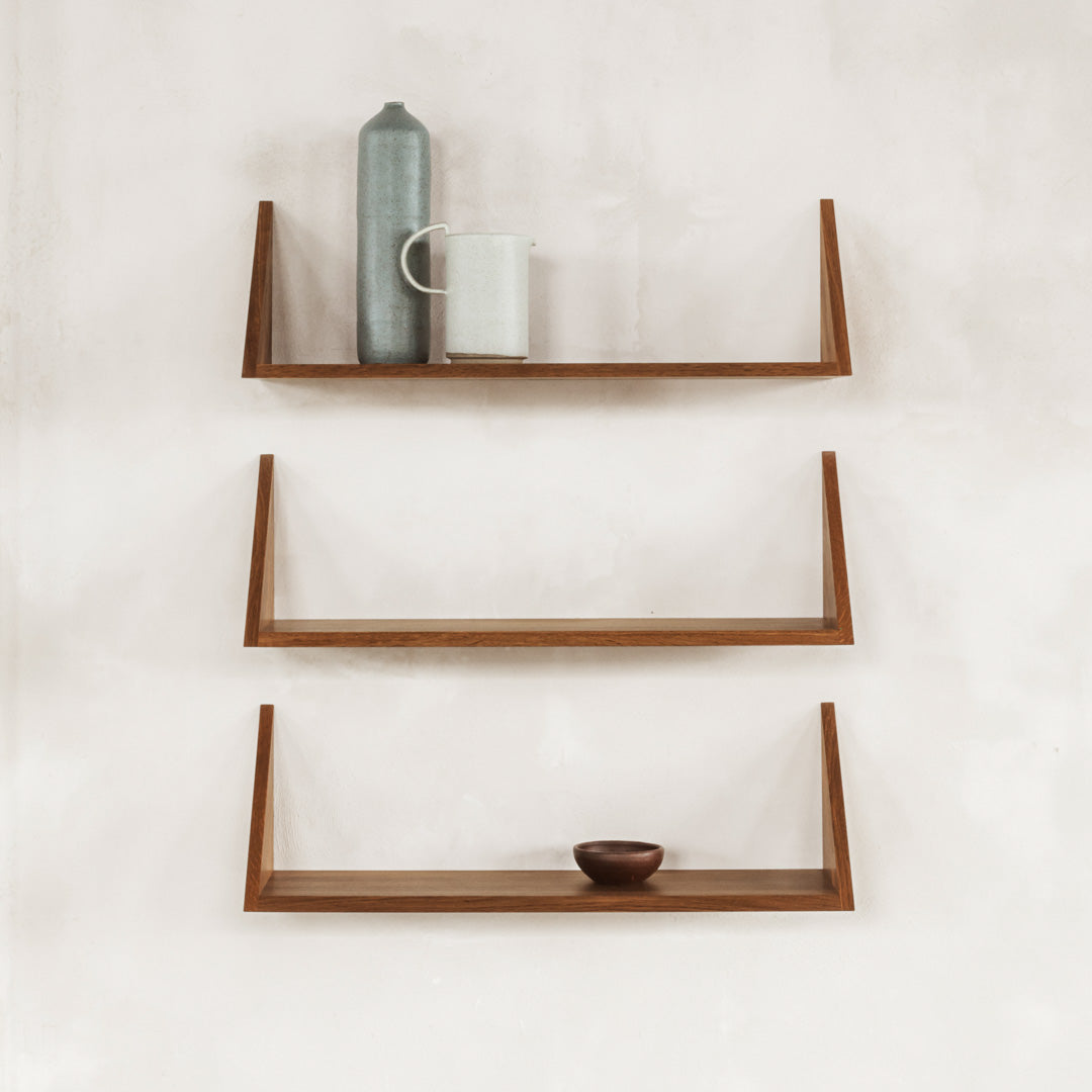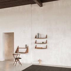 Sibast Furniture worked with danish artist Kasper Eistrup in developing the XLIBRIS series. Despite its apparent simplicity, XLIBRIS is brimming with small artisanal and functional details. These include a concealed cable outlet in the wall-mounted desk, enabling the elegant and discreet connection of a laptop, smartphone or lamp to the power grid. Both the shelf and the wall-mounted desk are assembled without visible screws, emphasising the impression of XLIBRIS as two integrated pieces of furniture that seemingly grow out of the wall. Kasper Eistrup’s artistic approach to design and his sense of detail are also evident in XLIBRIS, furnished with an exclusive brass emblem mounted on the side of both the shelf and the wall-mounted desk. The emblem is made up of four hearts joined into a four-leaf clover. The hearts symbolise a predilection for necessity, functionality, the material and the craft – all of which were involved in the development of XLIBRIS.