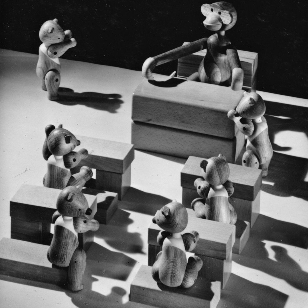 Kay Bojesen's friendly Bear with open arms was born in 1952. The range includes a wealth of imaginative wooden toys and has a very special appeal for both children and adults. For christenings, birthdays, school graduates, anniversaries and weddings. A classic and a dear friend for life – from being a popular toy in the playroom to a much-loved design icon in a future home. The bear now comes in two sizes: Small and Medium.