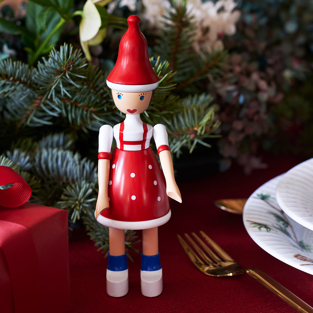 Make Christmas extra festive with the sweet Jule Lise in red and white colors. The figure, produced in FSC-certified painted beech, has been given a makeover. 17.5 cm in height.