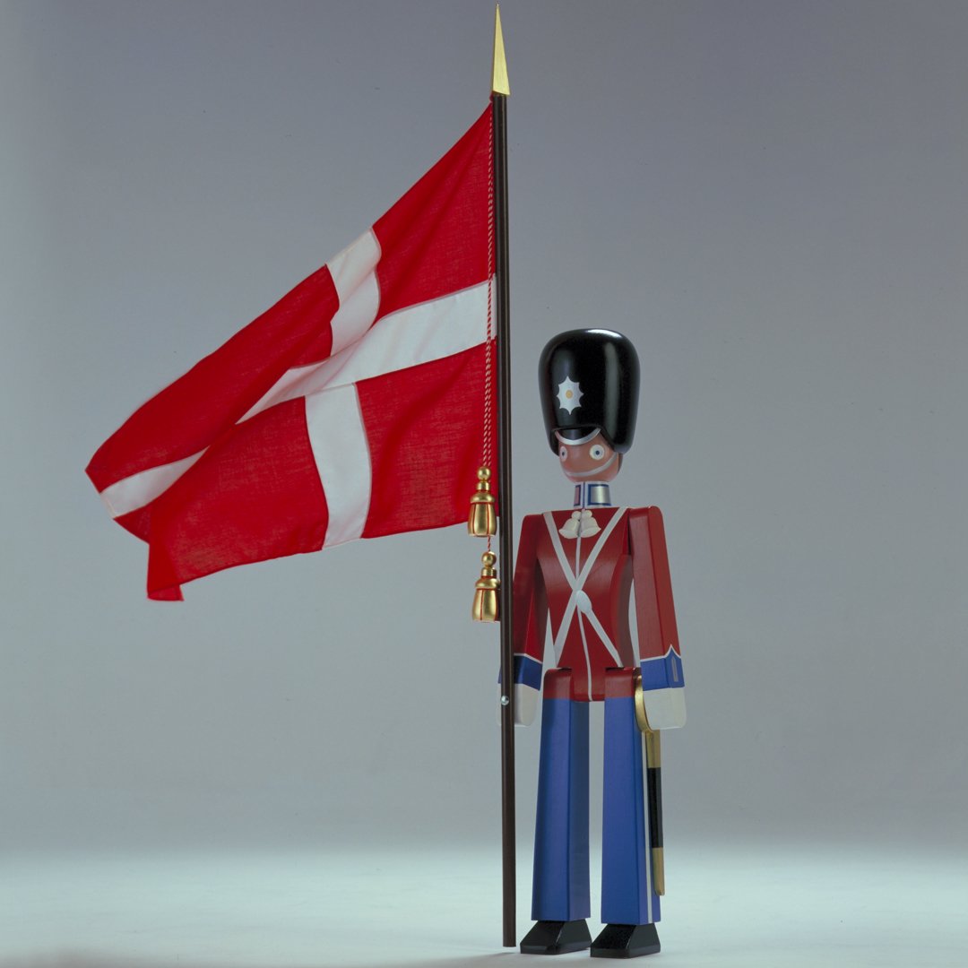 Inspired by one of Denmark's national symbols on the courtyard at Amalienborg Palace, Kay Bojesen created his guardsmen in 1942. This hand-painted Standard-bearer is a gentleman of a certain stature. A gift idea for a very special occasion – and for life. The Standard-bearer is made of durable spun polyester.