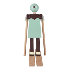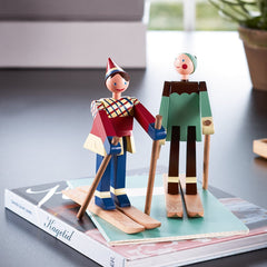 The two fresh-faced skiers were designed by Kay Bojesen towards the end of the 1940s. This happy boy skier with the red bobble hat and checked jacket is named Boje, which was the pet-name of Kay Bojesen’s son, Otto. The boy skier’s female companion is named after Otto’s wife Ruth, whose pet-name was Datti. These two dauntless figures were only produced in small series, so the original wooden ones are very rare. The fresh-faced boy skier is made of painted beech and looks all set to conquer Danish homes with his happy smile in this relaunch. The skiers stand 6.1" tall.