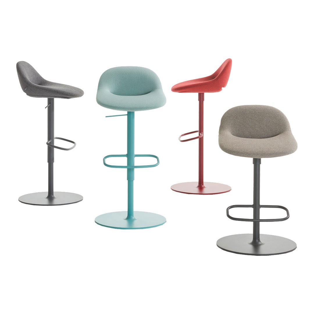 The newest addition to the very successful Beso family is a collection of bar stools. This collection is available in a height adjustable version with gas spring and two fixed height versions. A comfortable upholstered seat mounted on powder-coated pedestals adds to a modern and pure image.