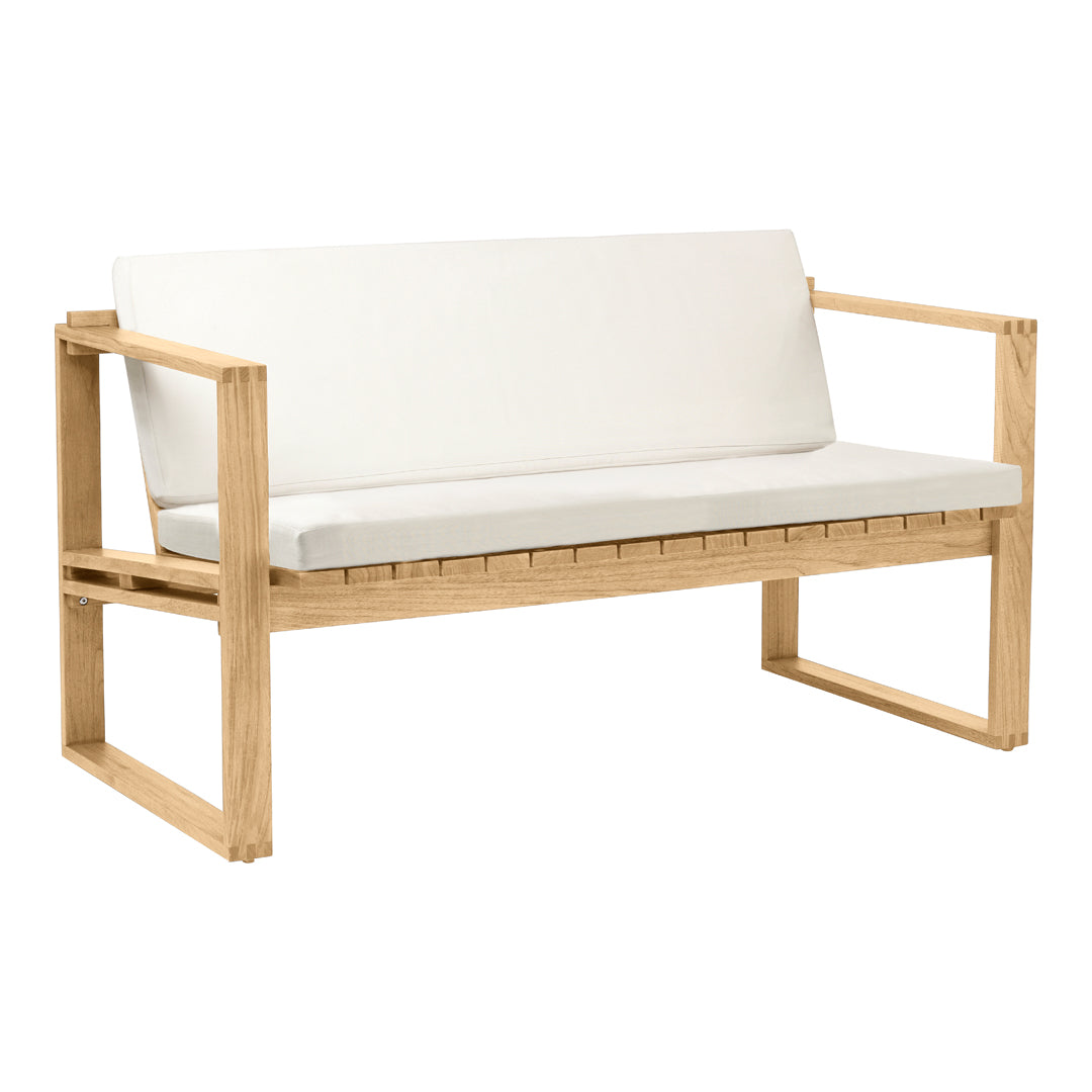The BK12 Lounge Sofa features a beautiful teak finish that is suitable for both outdoor and indoor use.