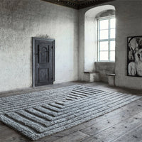Shaggy Labyrinth Rug is a patterned rug made from 100% wool. The distinctive labyrinth pattern is achieved by combining shaggy pile with flat weaved sections. This combination creates a unique and modern look with its high and low effect.