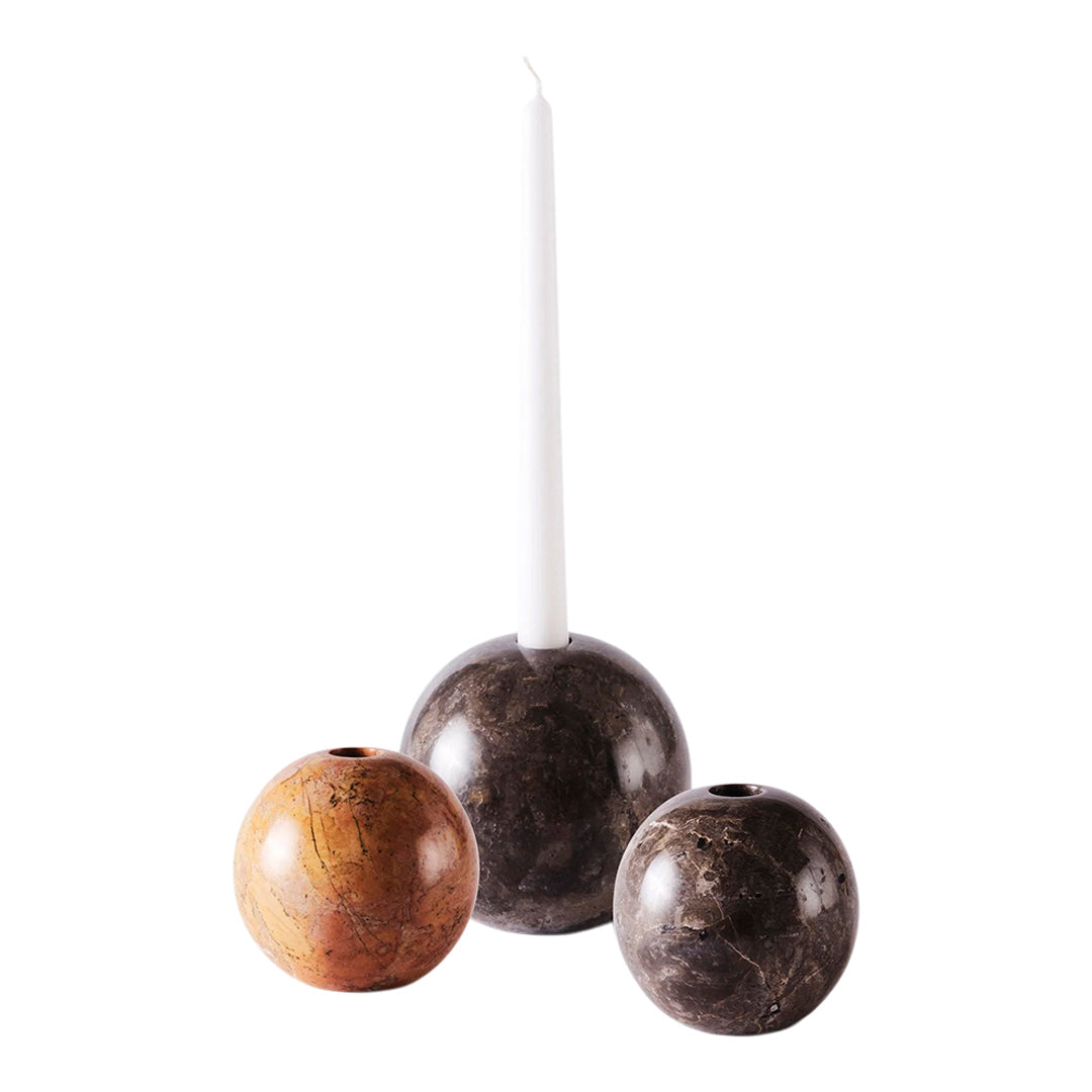 Sphere Candle Holder is a timeless candle holder that fits in almost any setting. The spherical base is made of solid marble. The color and marbling changes from piece to piece, making each candle holder unique.