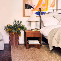 V Bedside Table is a multi-purpose table. With a lot of storage, this table is just as functional in your bedroom next to a bed, as in the living room next to an armchair or sofa. The bedside table in beech has been stained and oiled to receive a matte finish.