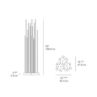 Twenty-one flexible, transparent PMMA rods create tubes of LED light flowing upwards from a black painted aluminum base.