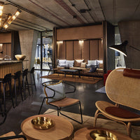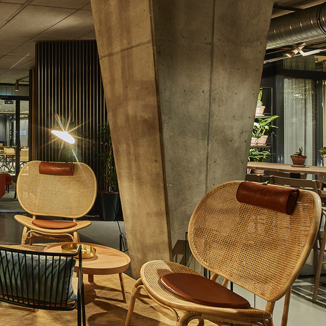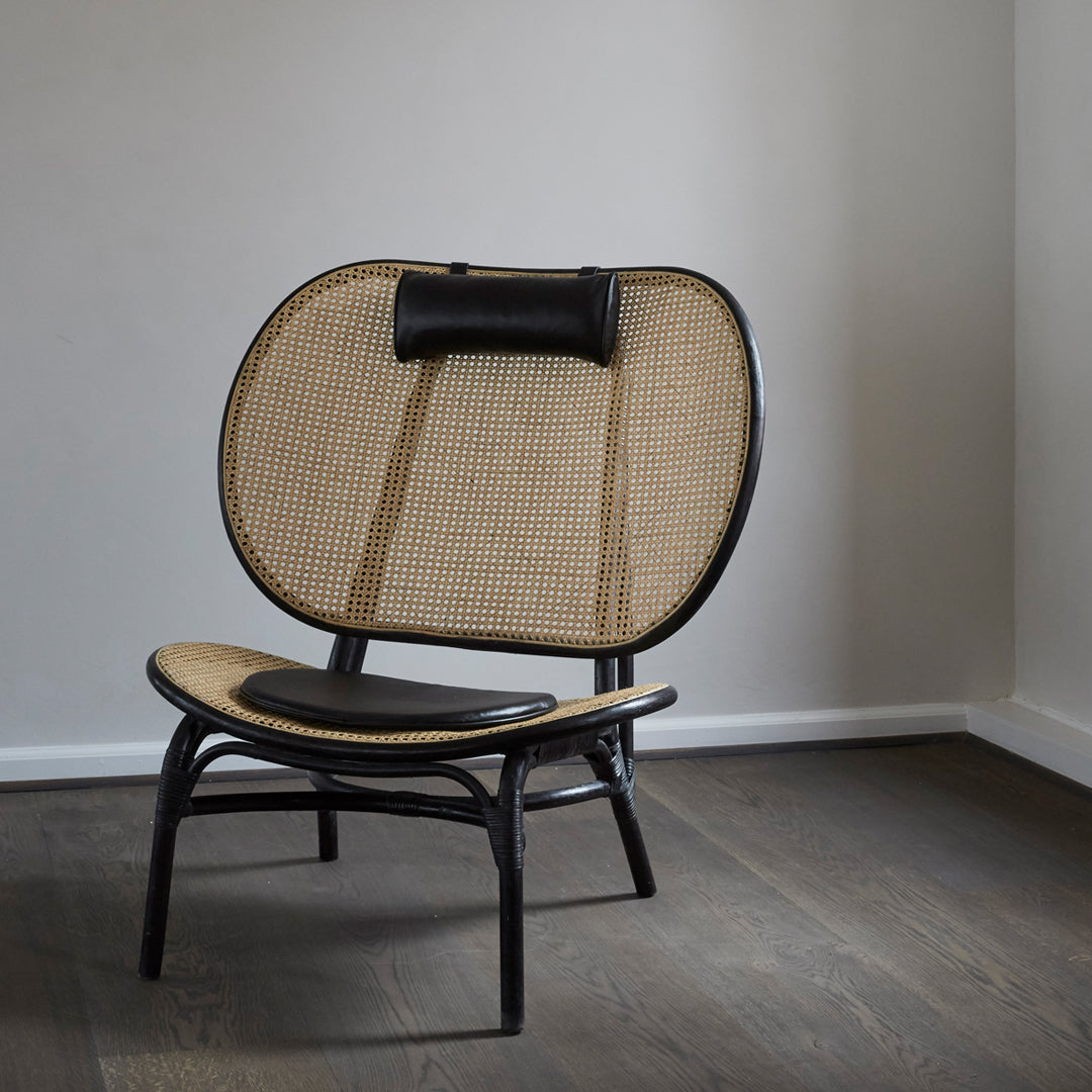 Nomad is a reinterpretation of the classic complex wicker chair, where the number of joints is simplified to its function only. Through a close cooperation with suppliers, many experiments have been done in order to develop the Nomads large seat and back frames, as well as the back leg which runs all the way from floor to top of the back in one piece.