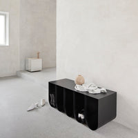 Made of slick black powder-coated steel the Curved Bench makes a bold and graphic statement in any habitant. The bench also enable you to store your magazines and other oddities within its curved base. Simple, distinct and functional design - because the world is complex enough.