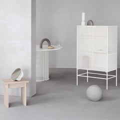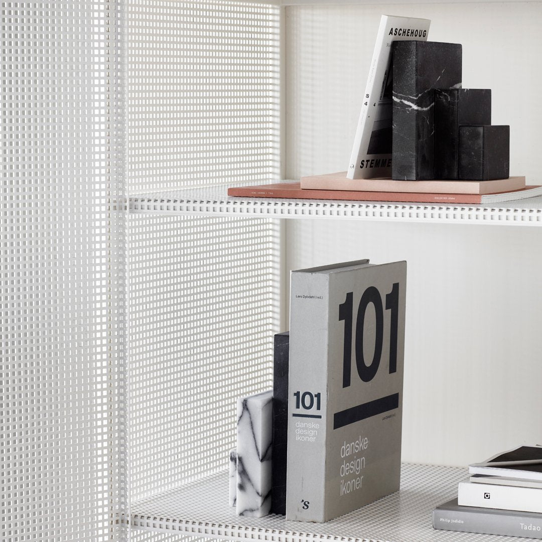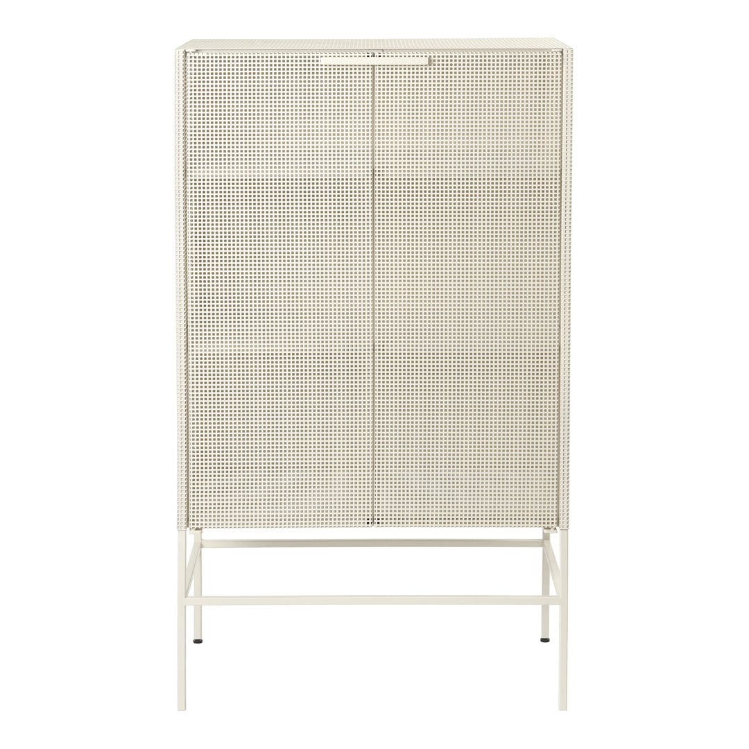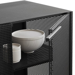 The Grid Cabinet is made of perforated steel. An elegant cabinet with a semi-transparent design.