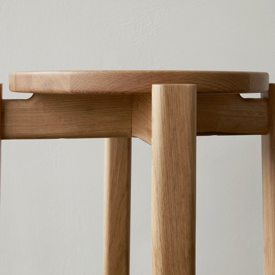 Carefully crafted with all the hallmarks of great carpentry, the Passage Stool in FSC-certified solid oak has a warm expression and an organic silhouette that invite to touch. Devised as a flatpack for quick and easy self-assembly, connecting the user to the design, it is offered in a natural or dark lacquered finish. The versatile, flexible piece can be used anywhere where an extra seat is required, at the dining table, office desk, or even as a side table or landing place for clothing in a bedroom or bathroom, and multiples can be stacked together when not in use.