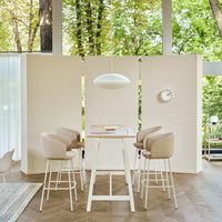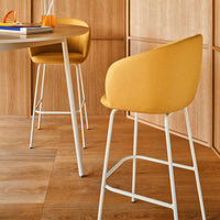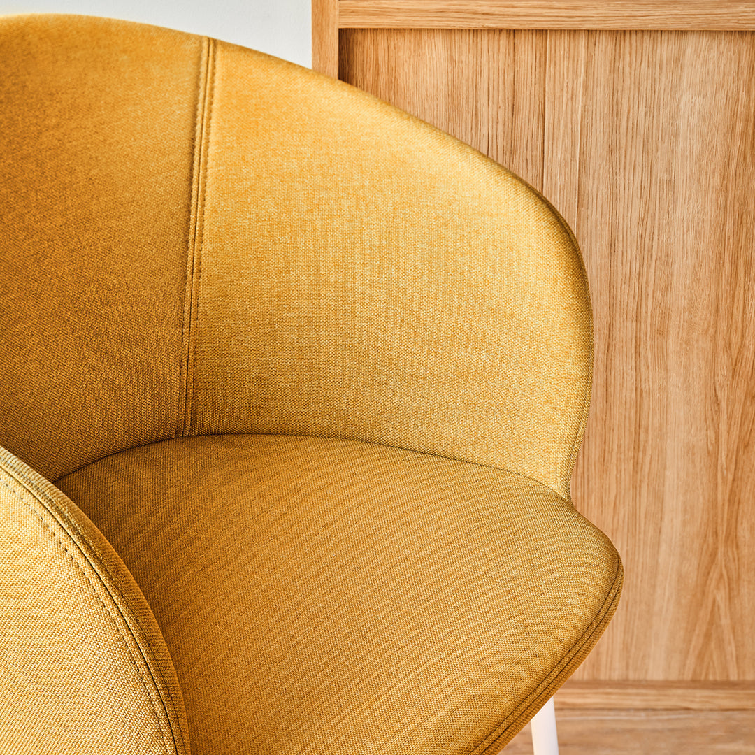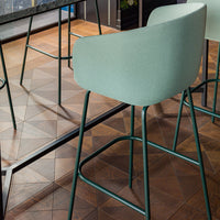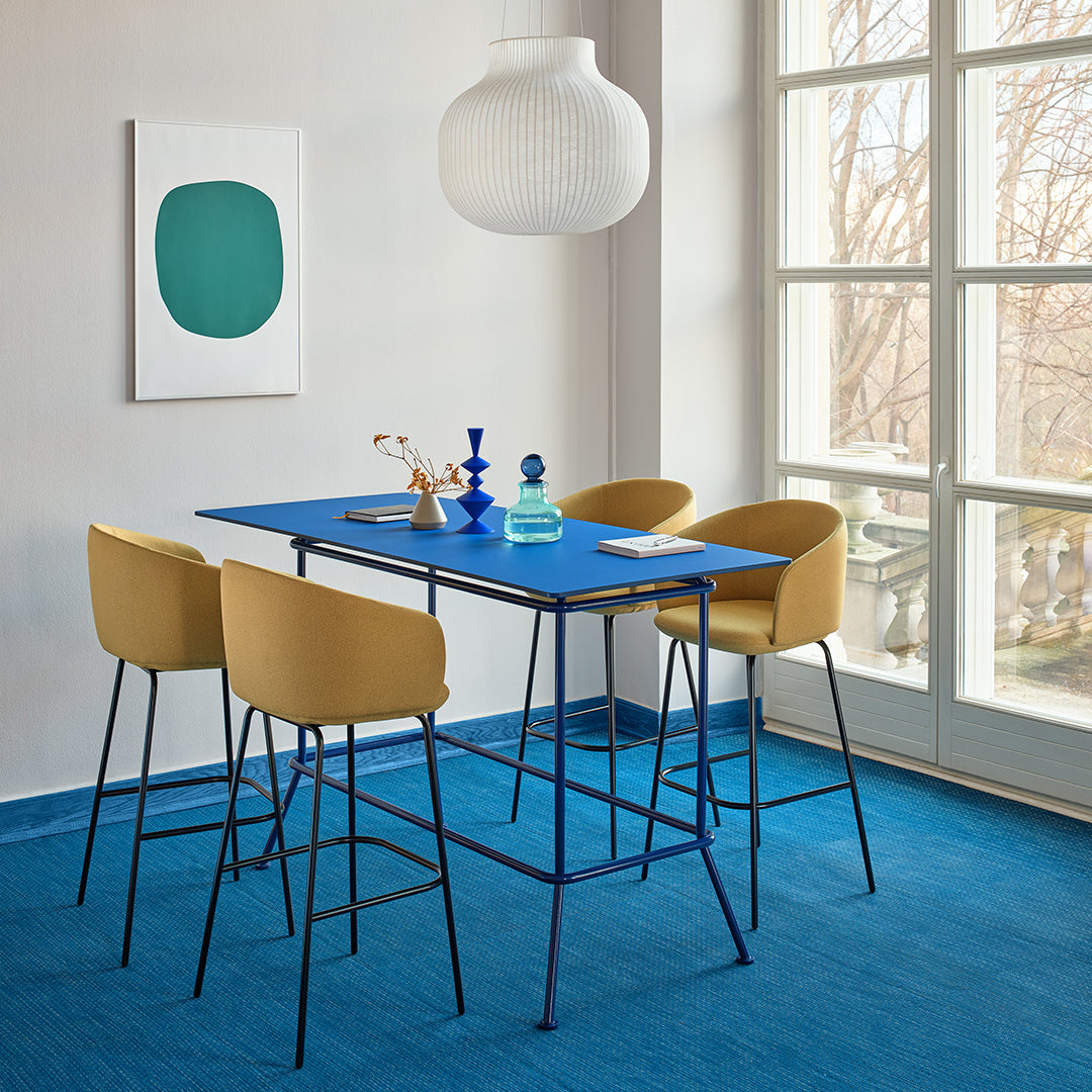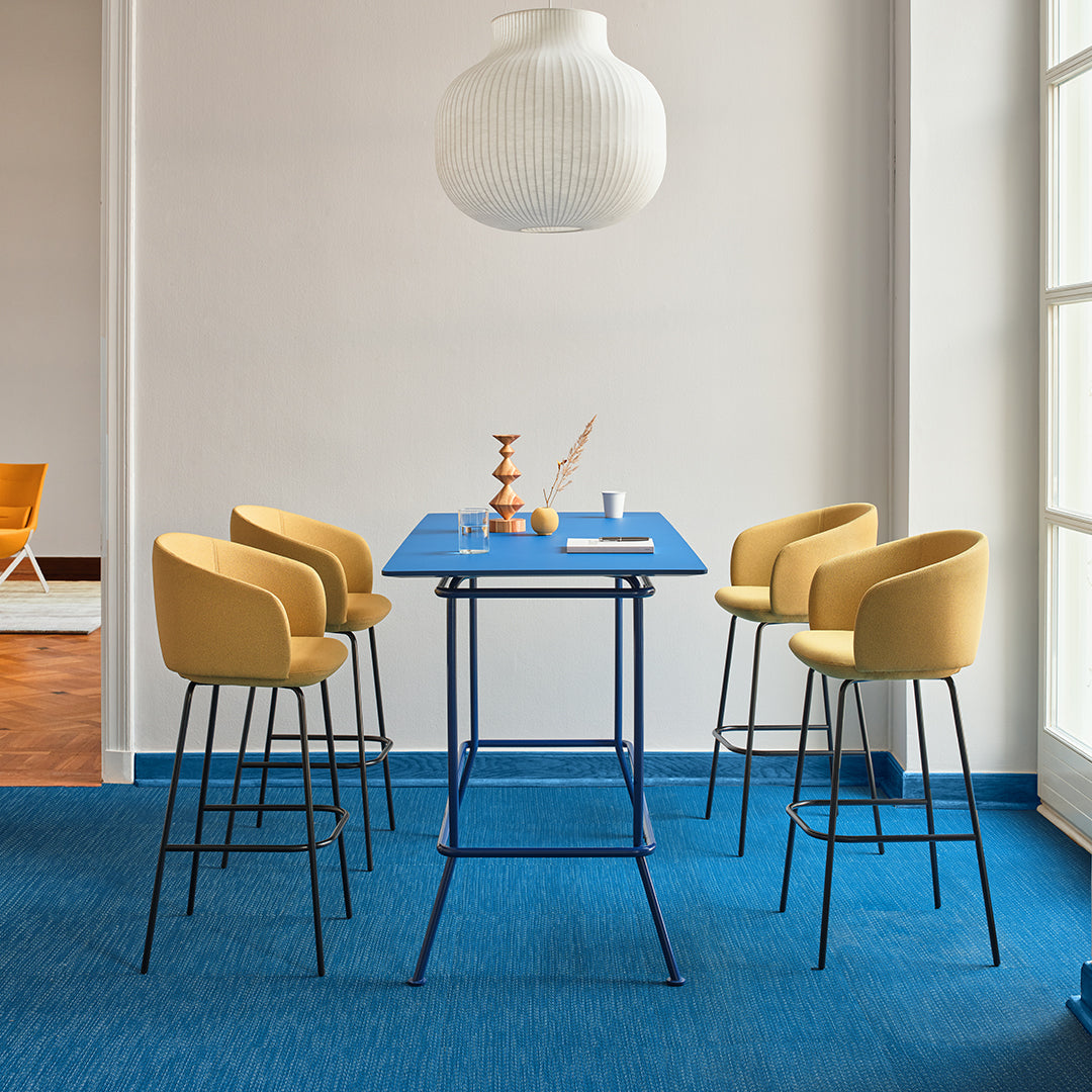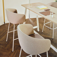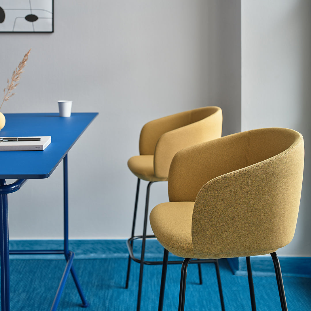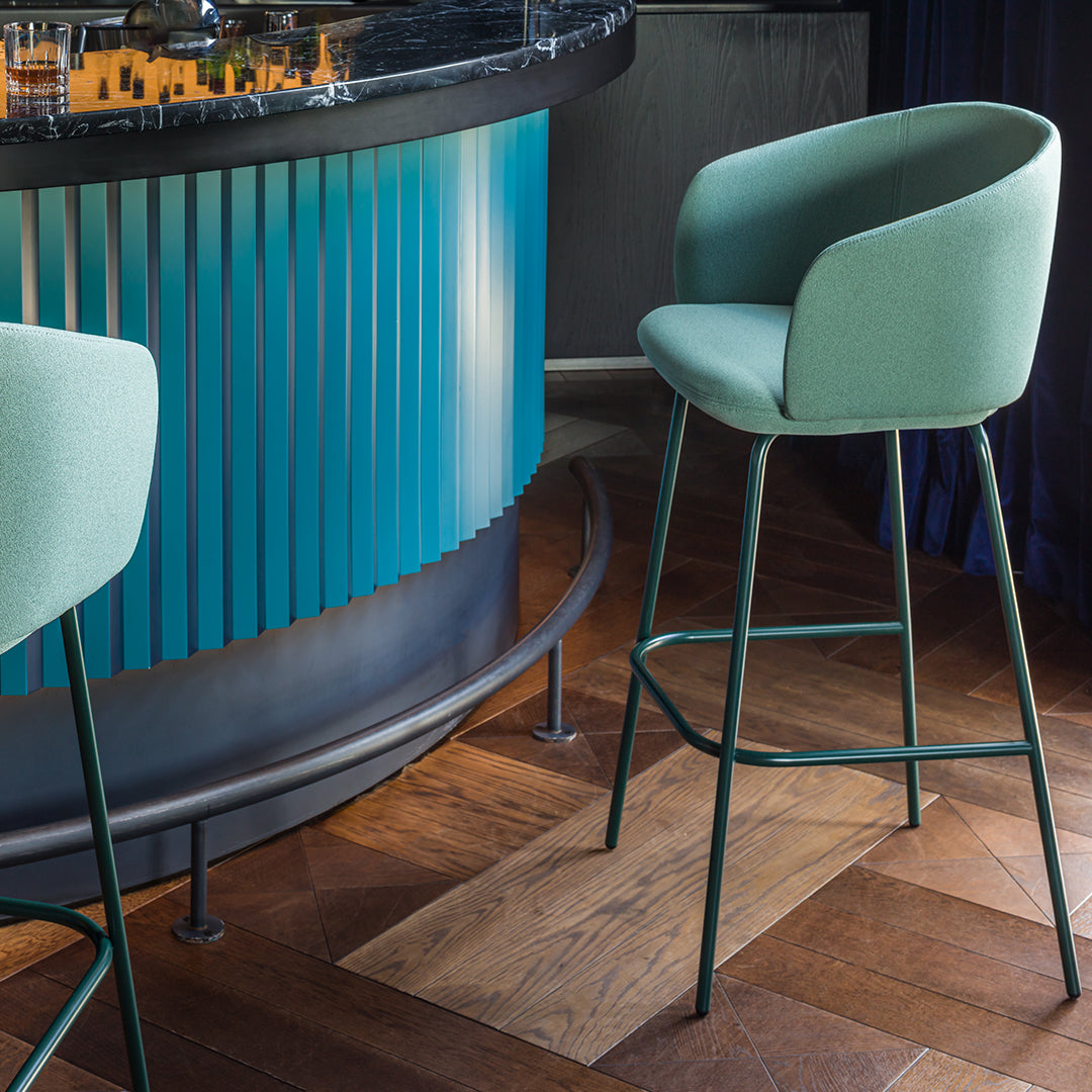 With the onset of popularity in bars and restaurants at the dawn of the XX century, high stools have consistently stormed their way into office canteens and residential interiors. Typically high stools feature a narrow and simplistic design, yet Grace takes on a different approach. The fully upholstered backrest integrated with armrests and the seat embrace the user providing superb comfort. Grace invites to take a seat for longer. Elegant framework, in two heights, ensures balance and stability, while the abundance of configuration options allows for great adaptability. Grace offers an armchair experience in a high stool edition.