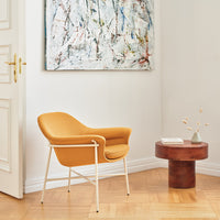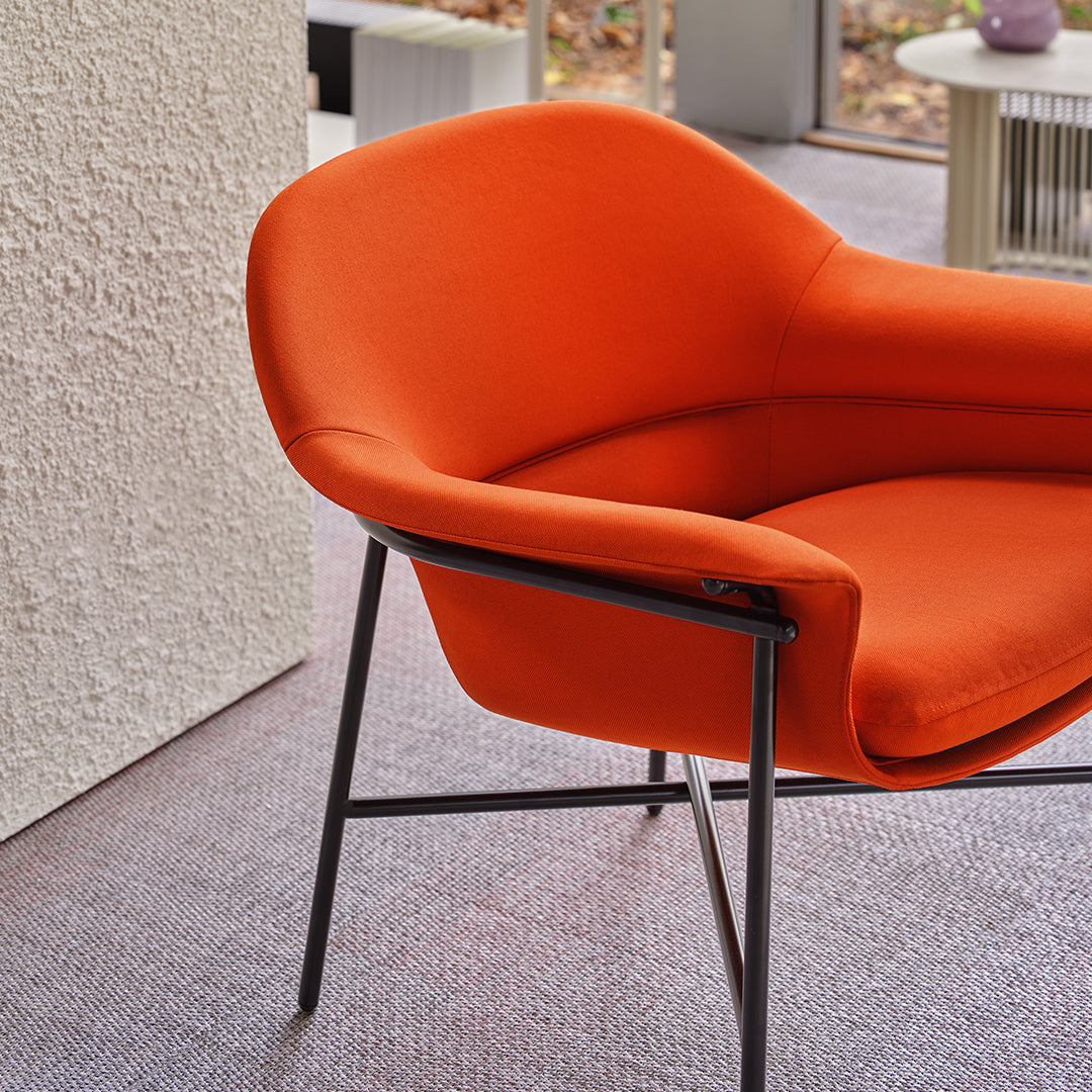 Classical form, soft outline, sleek base and comfortable cushions are the essential features of the Ismo armchair. The untypical wide seat is supported on a sleek piping base, that hugs its backrest. Those contrasting parts make Ismo a modern and at the same time nostalgic piece of furniture. Its timeless, uncompromised design balances comfort and style. Soft lines of the wide seat invite the User to sit back and relax, and wrap around them gently. Ismo is perfect for lounge zones, living rooms, libraries and for meetings, leisure and relaxation. Compact size makes it a great choice for residential and cosy interiors.