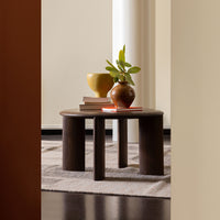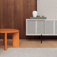 Launched in 2020, the IO COFFEE TABLE is a mid-sized coffee table from the IO COLLECTION — a standout, well-constructed centerpiece with generous curves and a soothing matte finish that begs to be touched. The table’s solid, unapologetic construction lends it a compelling, somewhat magnetizing presence, instantly commanding the attention in a room. Eye-catching yet unobtrusive, the IO COFFEE TABLE’s smooth facade and minimalistic profile allows it to complement a wide range of contemporary interiors and living spaces.The organic curvature and structural integrity of the IO COFFEE TABLE reflects Fejtland’s commitment to honest, masterful craftsmanship — imbued with L.Ercolani’s design DNA. Constructed of solid wood, the rounded, plank-like legs of the IO COFFEE TABLE are a seamless extension of the table’s sinuous profile, creating a continuous, uninterrupted silhouette from top to bottom. The IO COFFEE TABLE boasts a moulded, circular table-top with uniform, tactile edges and a homogeneous, unblemished surface — perfect for displaying books, magazines and various design objects.