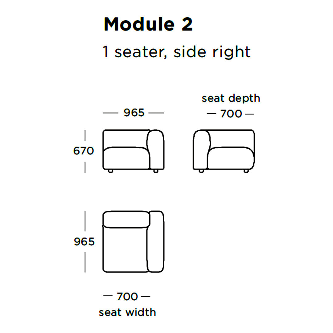 Module | Module 1 (1 Seater - Side Left): 38" W x 38" D x 26.4" H