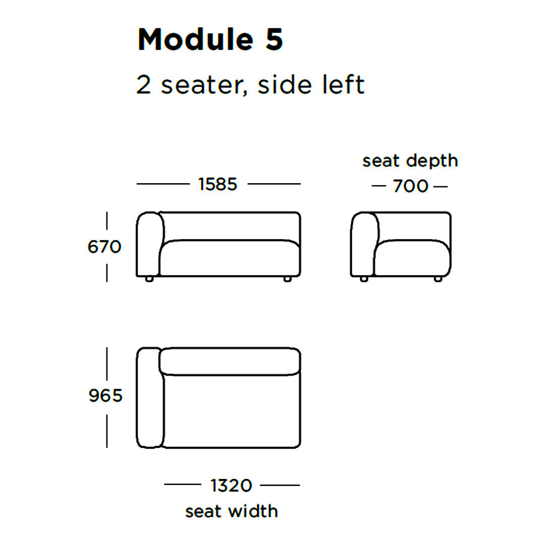 Module 5 (2 Seater - Side Left): 62.4" W x 38" D x 26.4" H