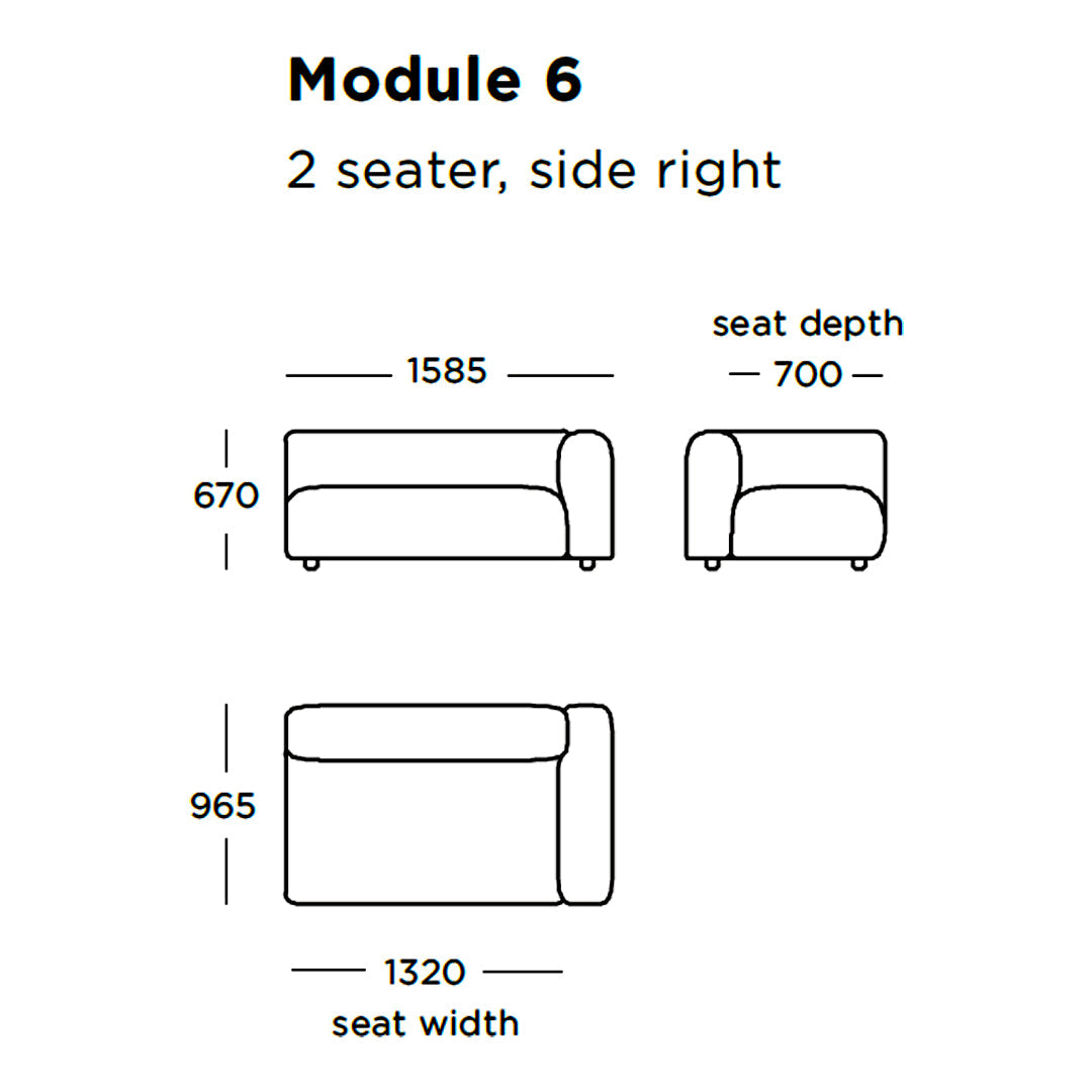 Module 6 (2 Seater - Side Right): 62.4" W x 38" D x 26.4" H
