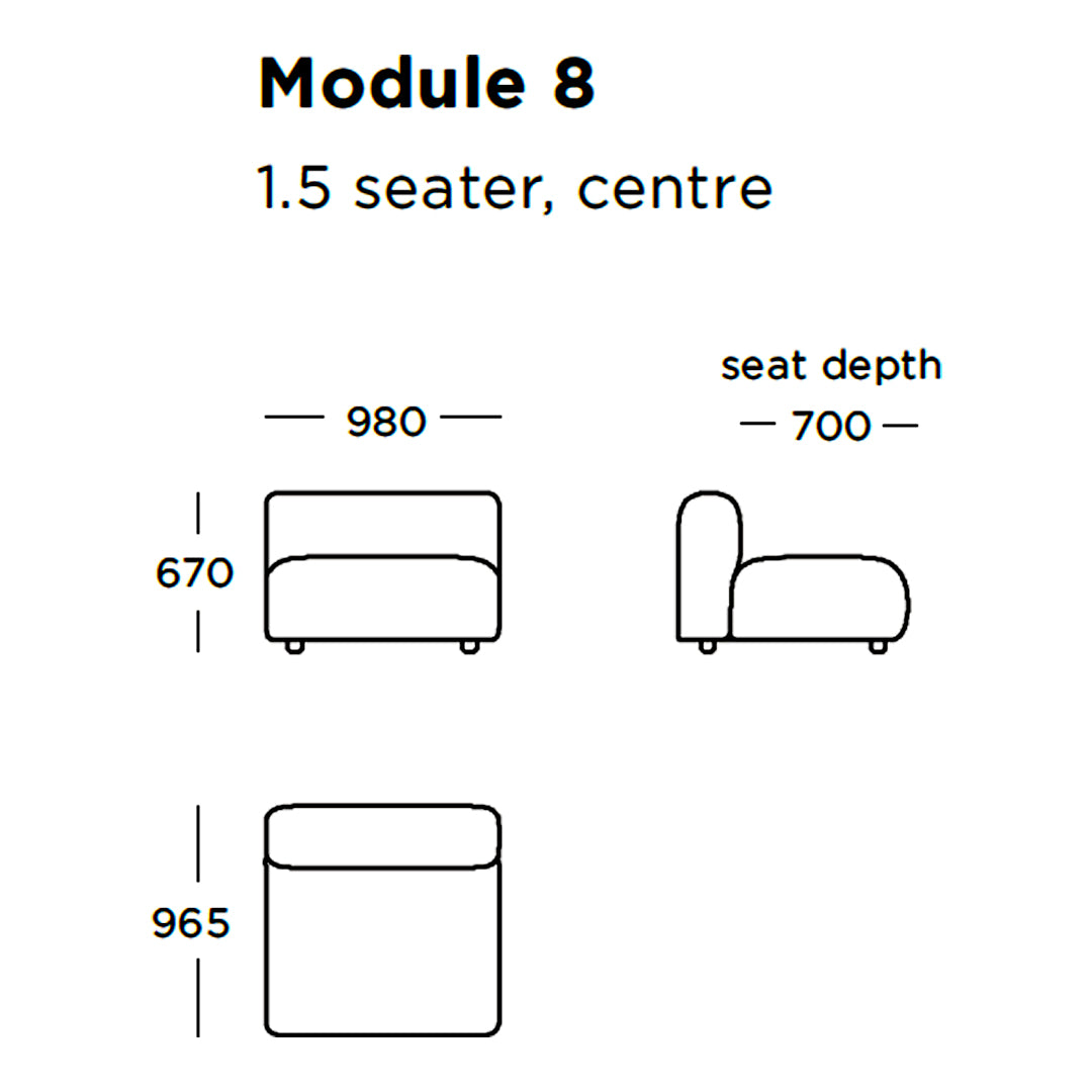 Module 8 (1.5 Seater - Center): 38.6" W x 38" D x 26.4" H