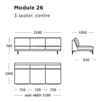 Module 26 (3 Seater, 3 Seats, Center): 85.8" W x 39.4" D x 30.7" H | 15.7" SH