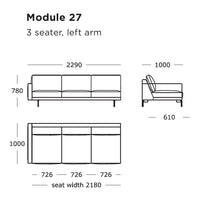 Module 27 (3 Seater, 3 Seats, Left Arm): 90.2" W x 39.4" D x 30.7" H | 15.7" SH