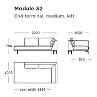 Module 32 (End Terminal, Medium, Left): 82.3" W x 39.4" D x 30.7" H | 15.7" SH